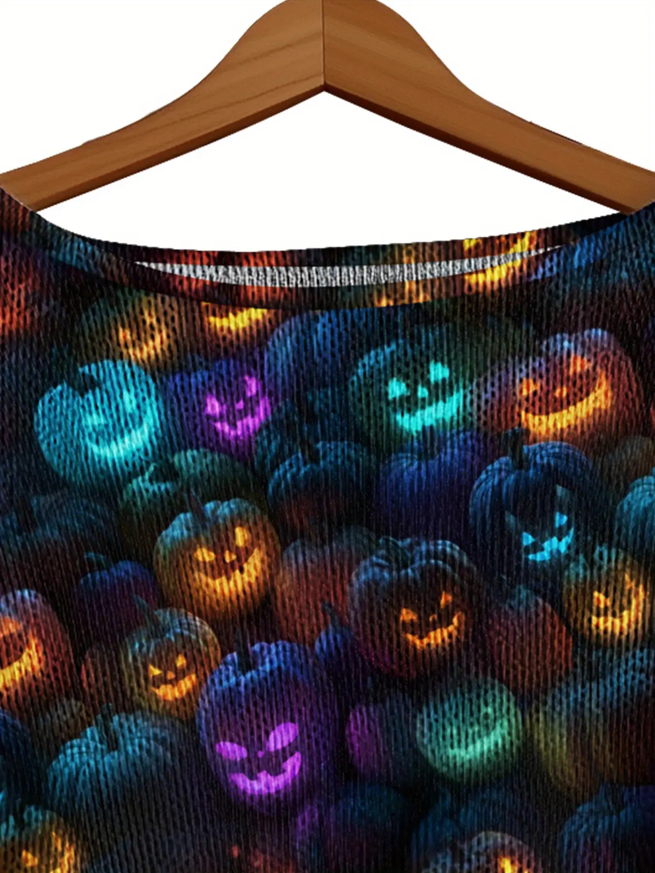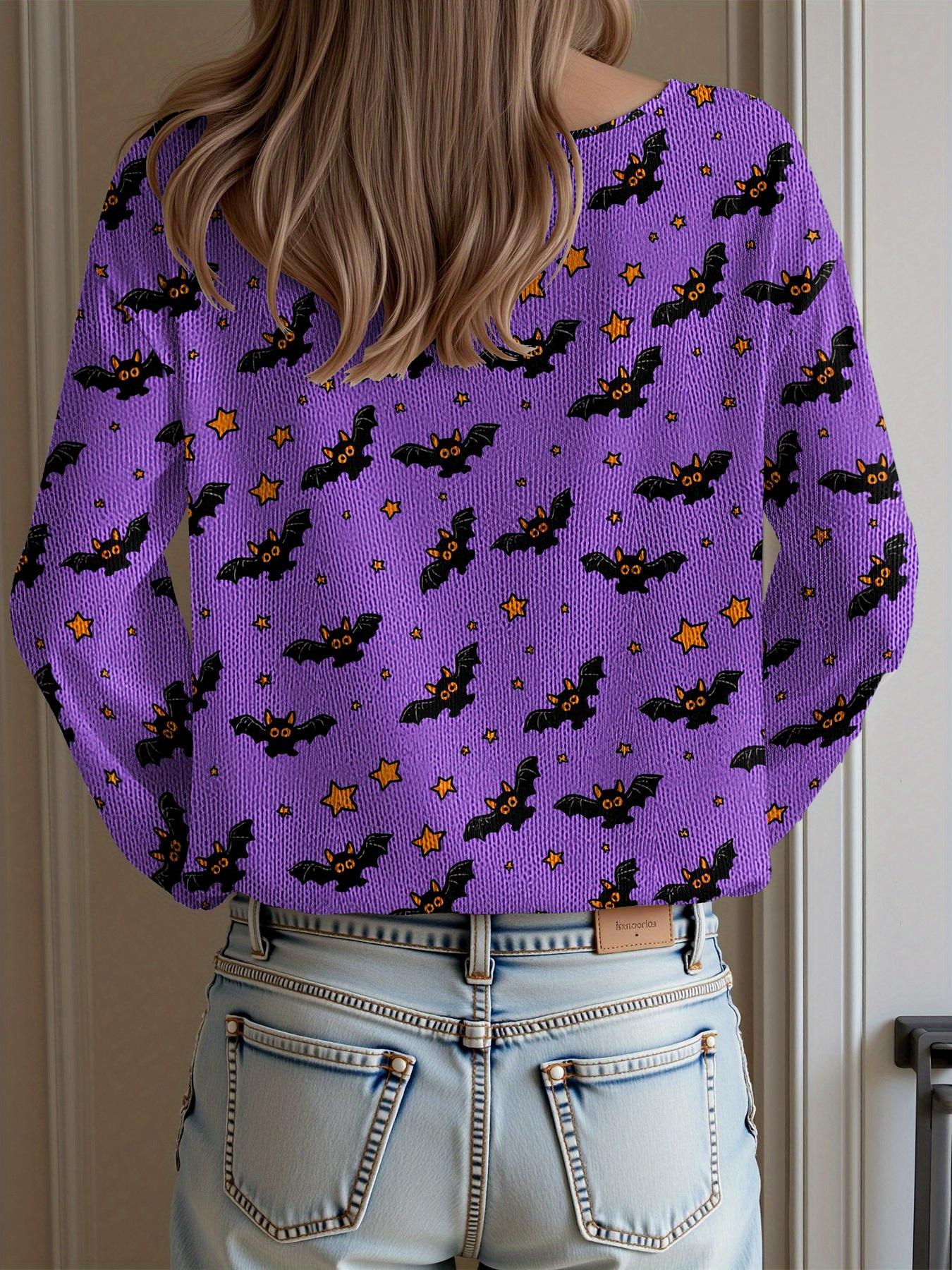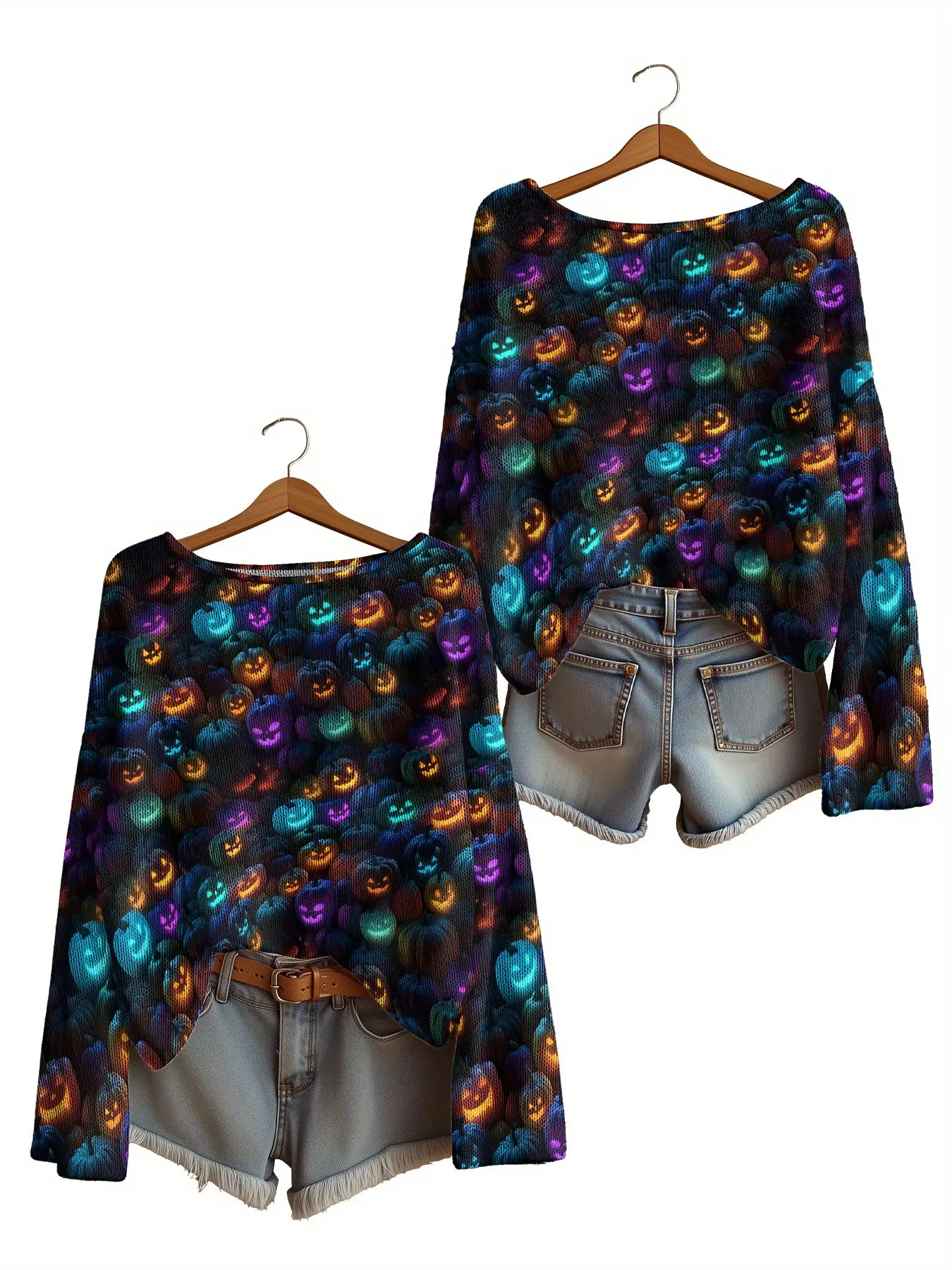 Plus Size - Women'S Fashion Off-the-Shoulder, One-Shoulder, and Boat Neck Sweaters-Personalized oversized sweater Halloween Party Women Sweater Soft Loose Pullover Thin Material Wearing During Trick-or-Treating Comfortable and Festive Atmosphere