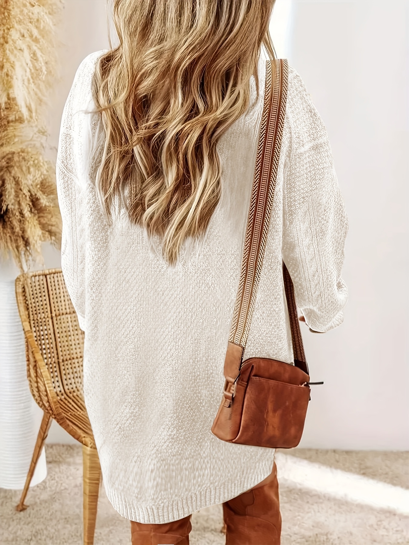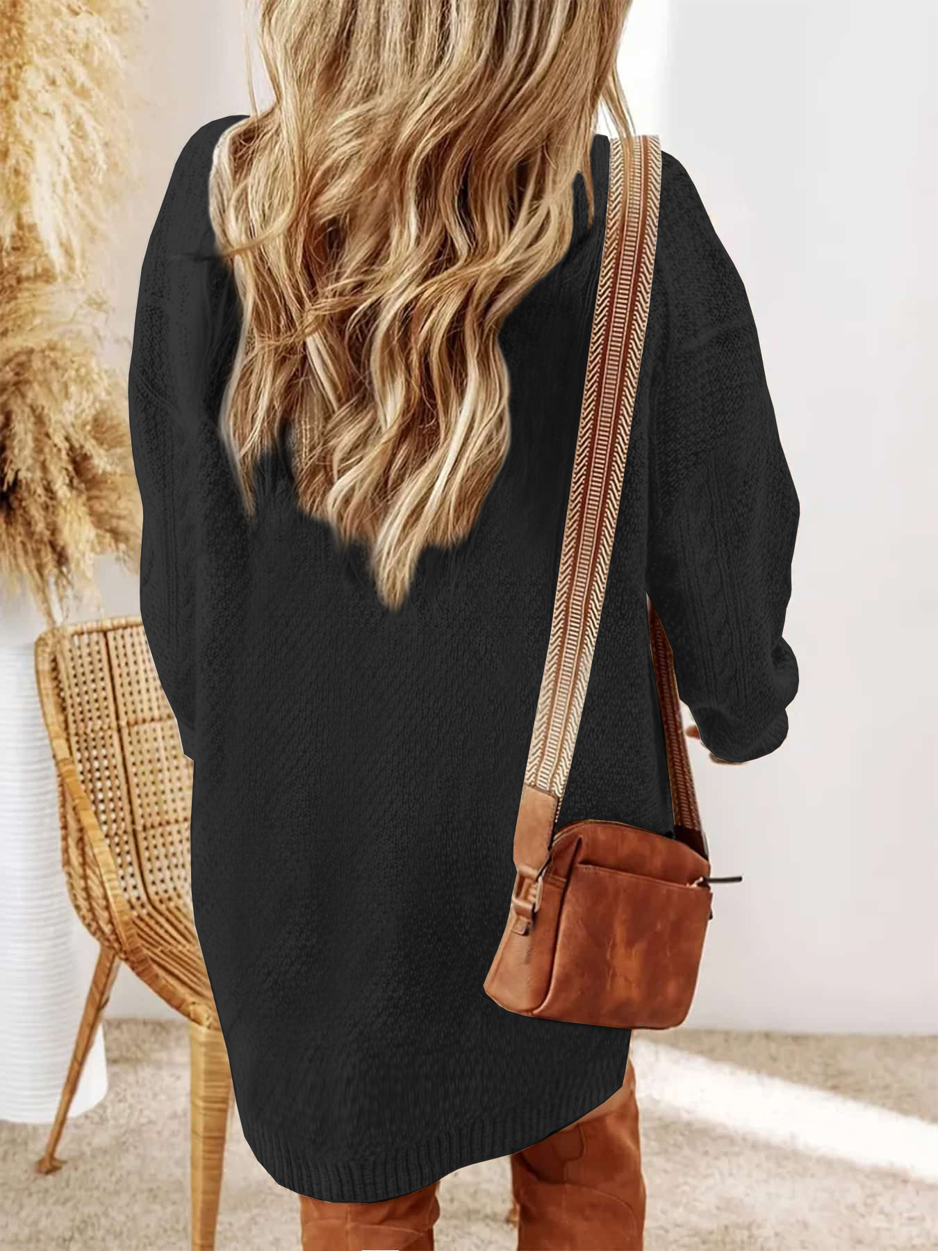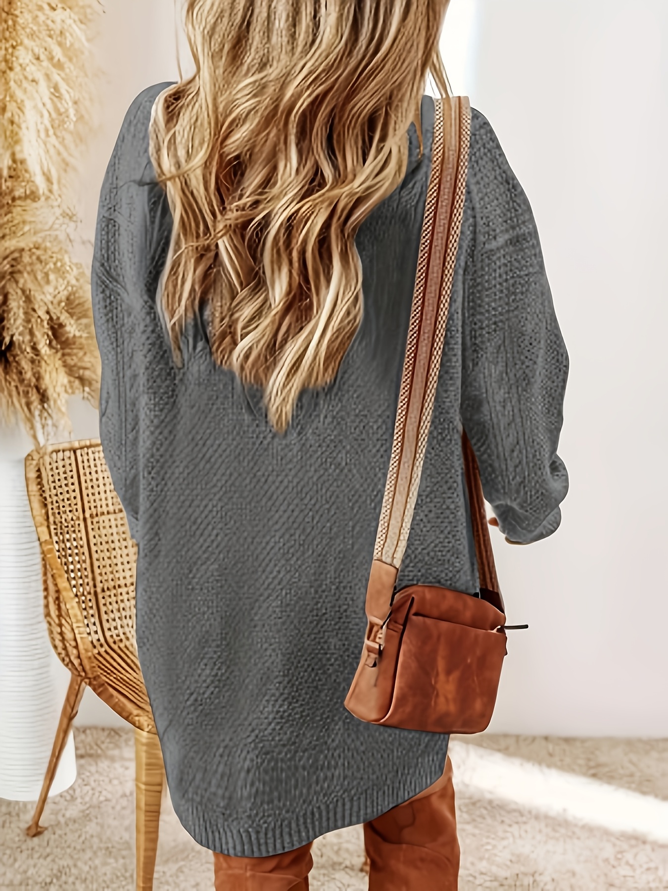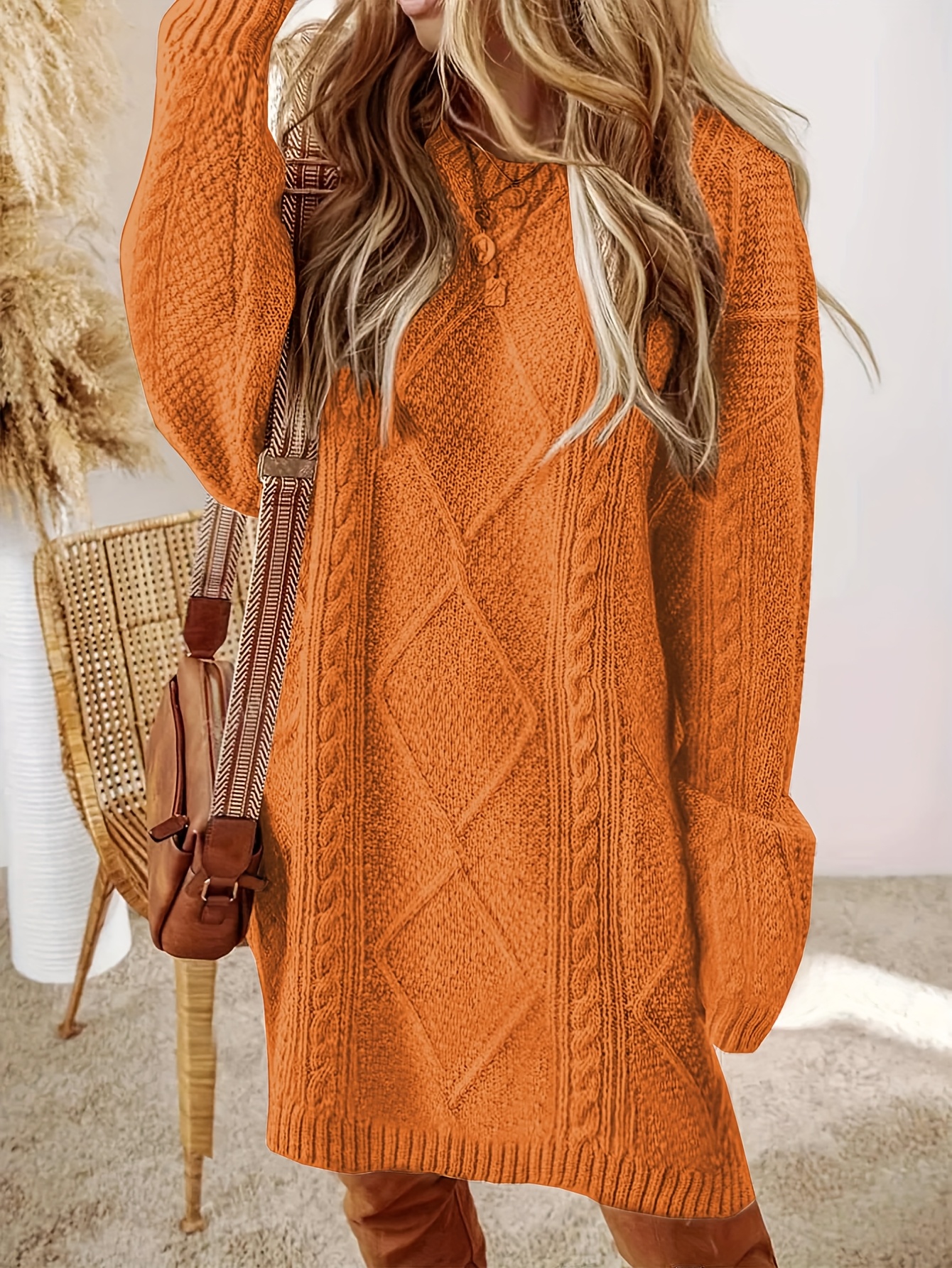 Plus Size - Women'S Plus Size Crochet Diamond Jacquard Drop Shoulder Sweater Dress - Loose and Casual Mid-Length Sweater, Warm and Comfortable, Perfect for Fall and Winter