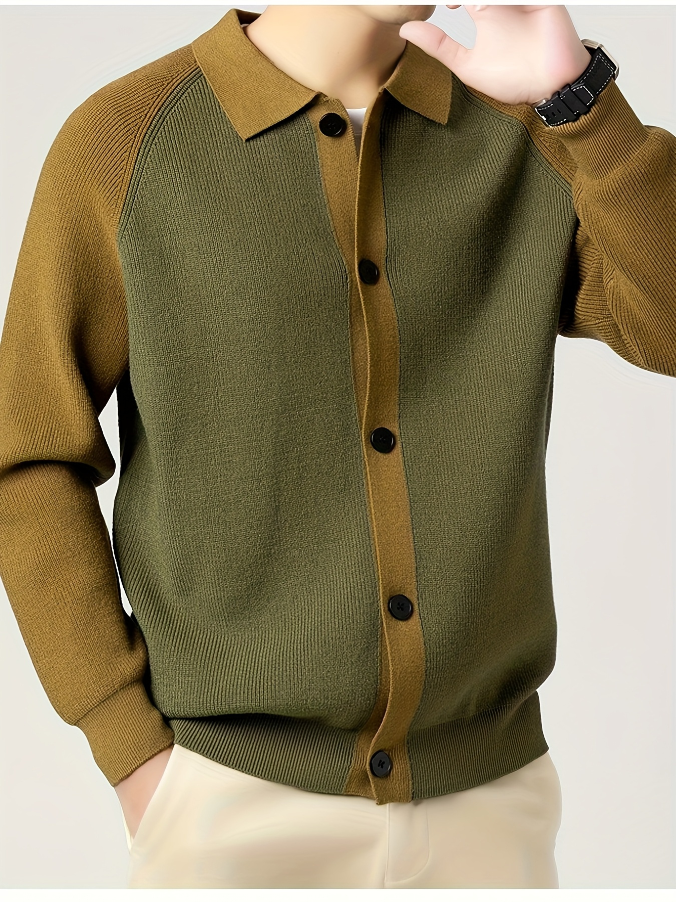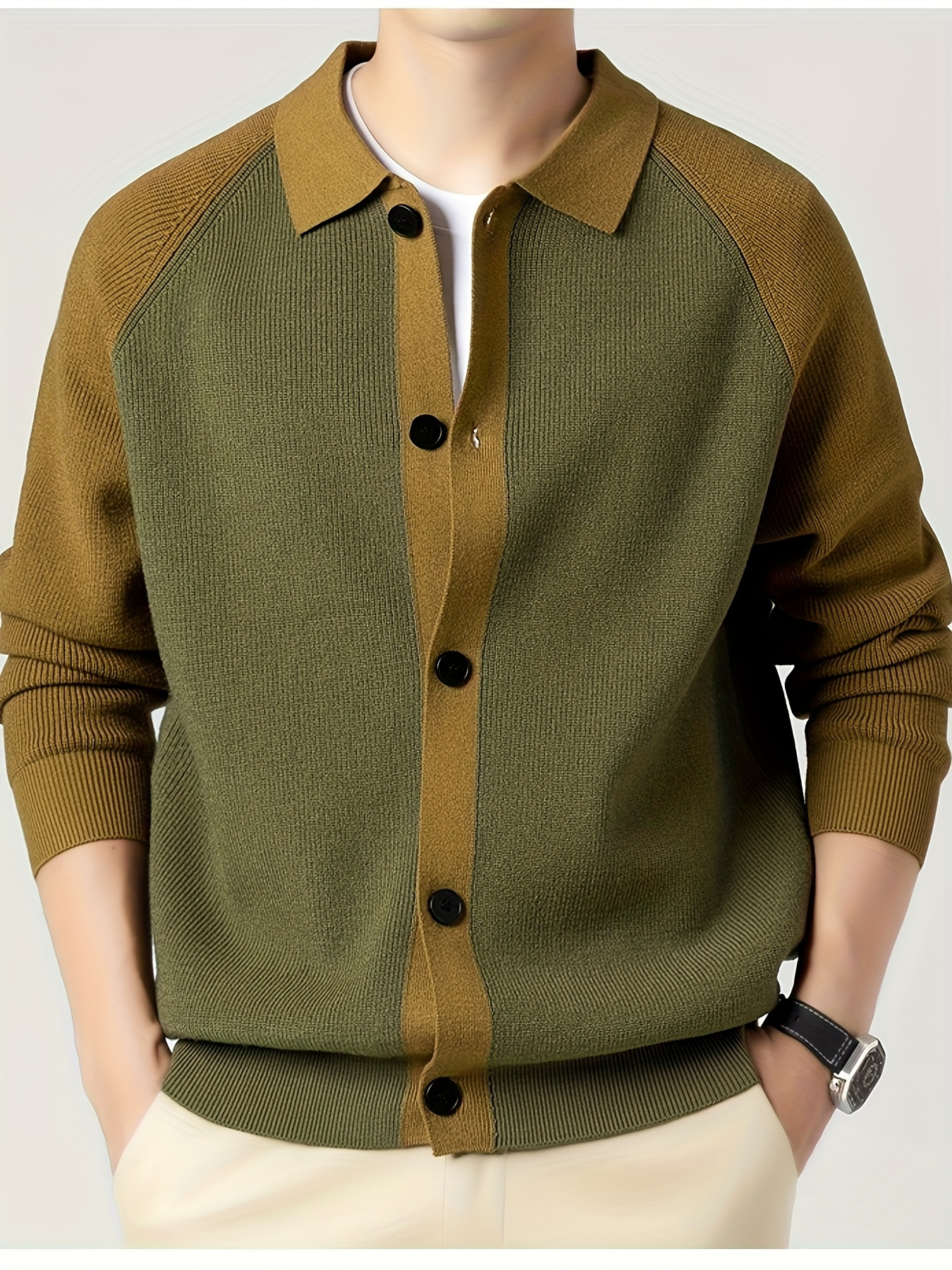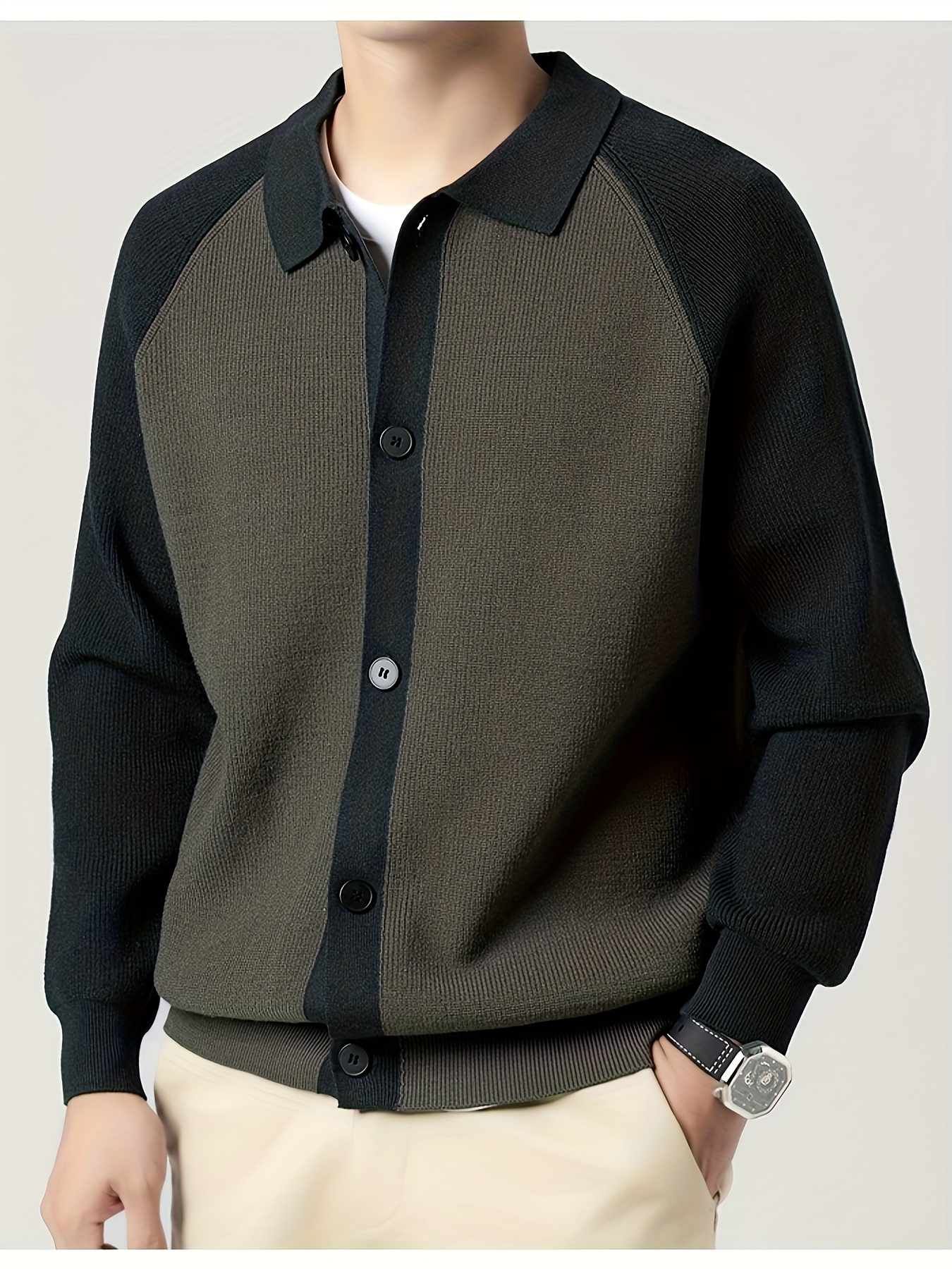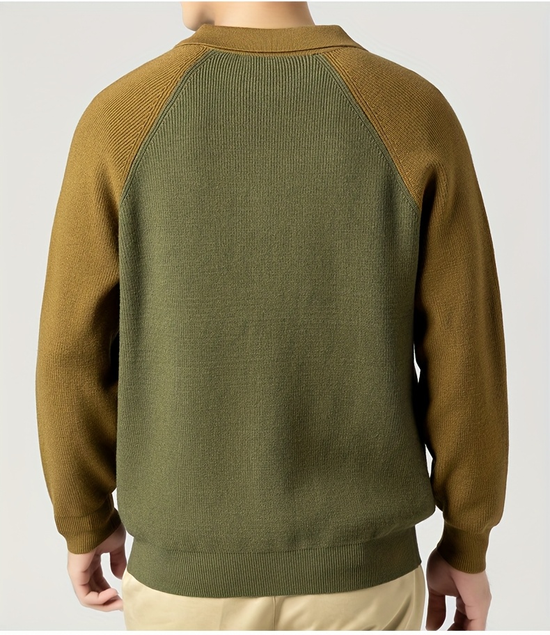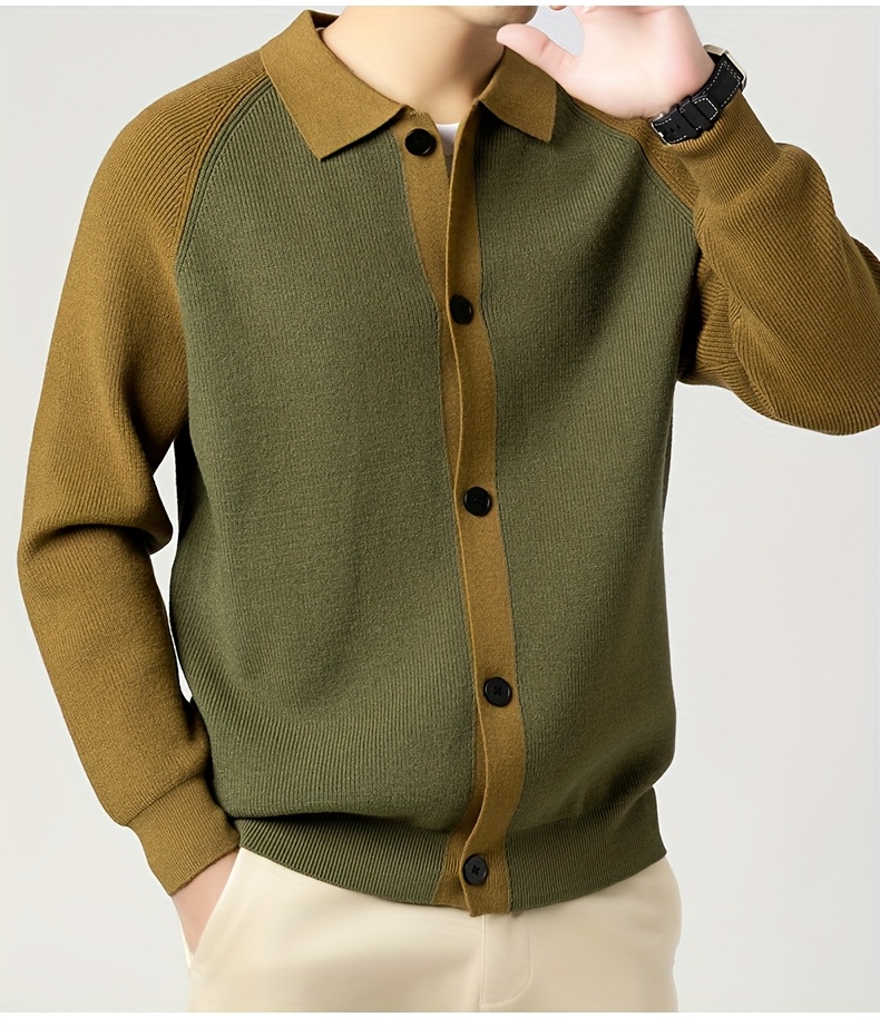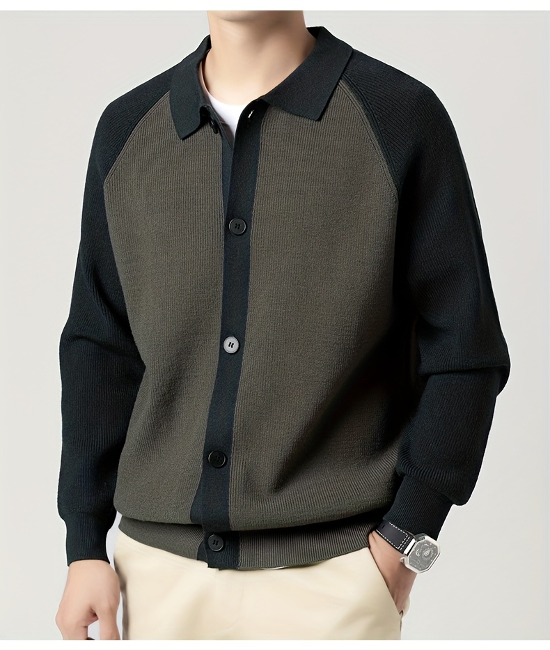Fashionable Casual Color-Block Men'S Knitted Cardigan | High-Quality Lapel Button, Loose Fit, Stylish and Warm, Perfect for Fall/Winter