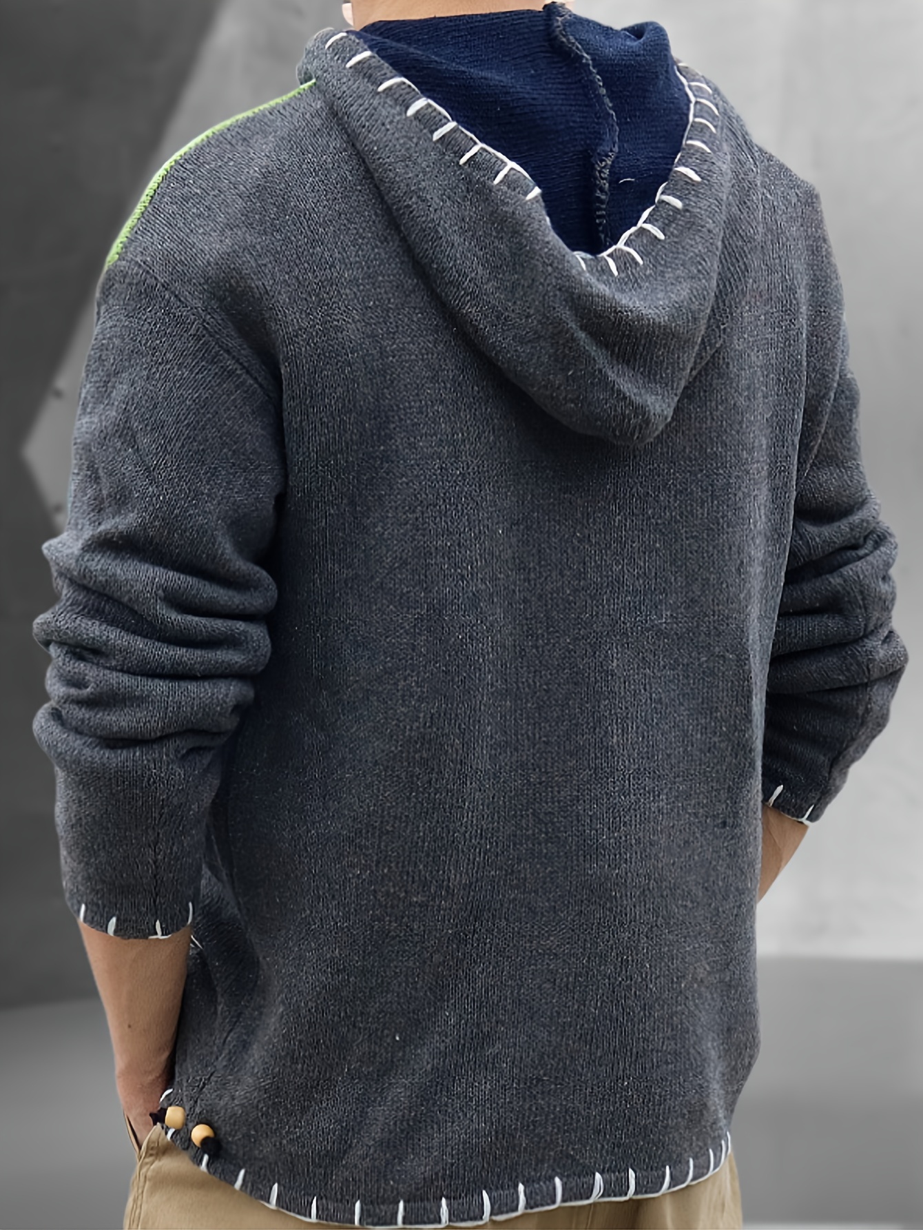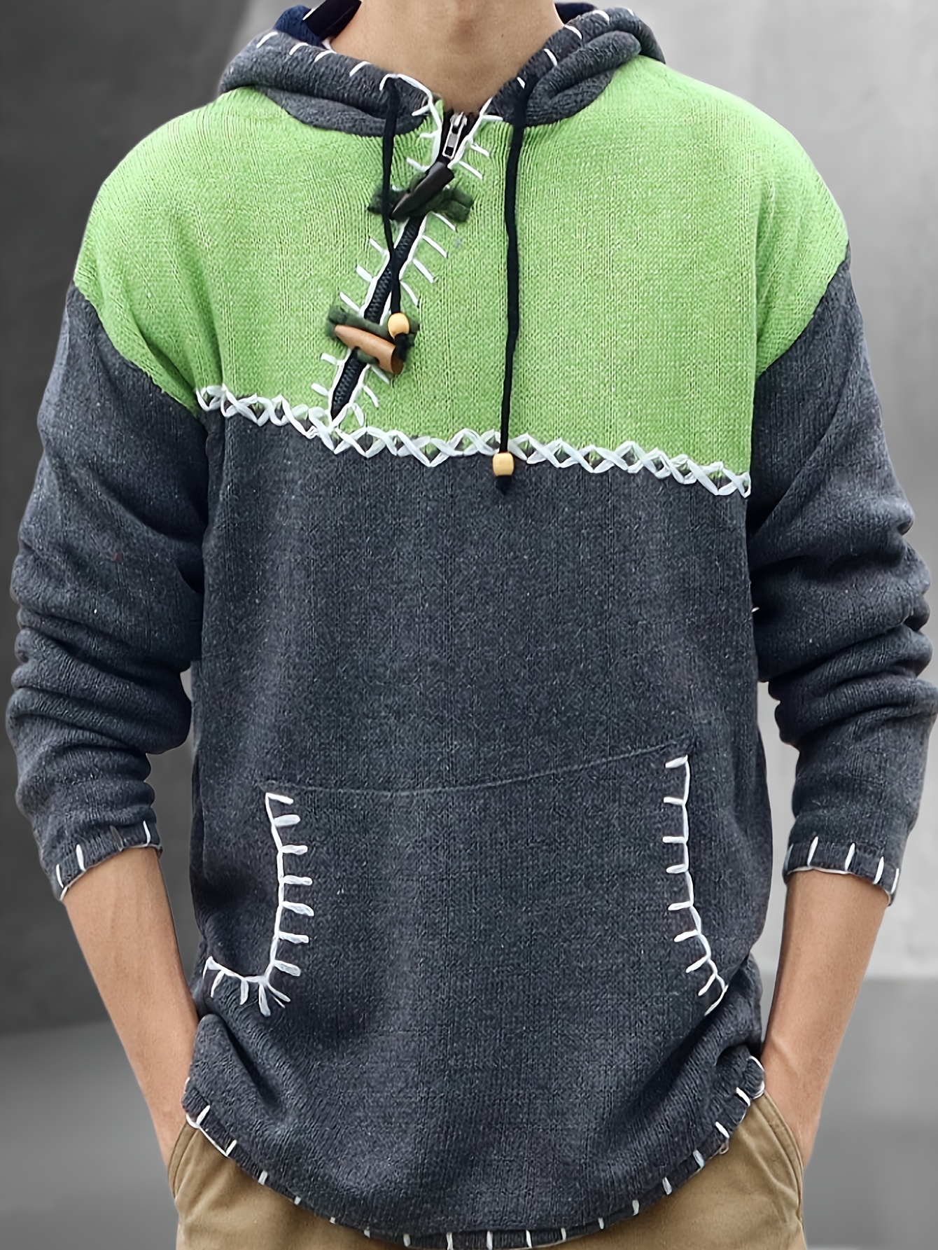 Men's Fashion Color Block Long Sleeve Hippie Hoodie Sweater Autumn Winter Pullover Sweater