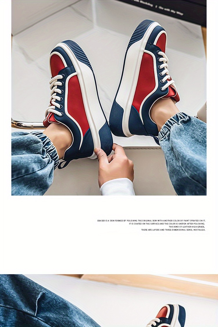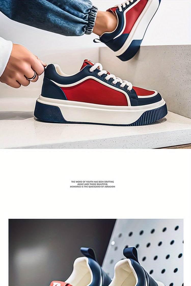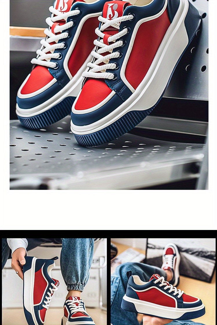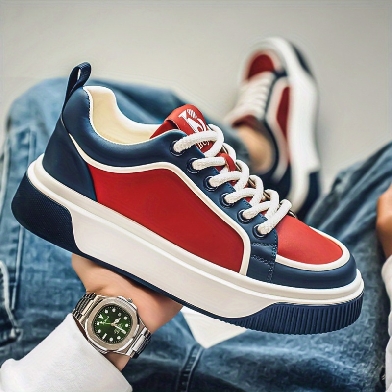 Men'S Chunky Skate Sneakers - Low-Cut Lace-Up Skate Shoes with Anti-Slip Rubber Sole, Red/Blue/White Colorway - Cushioned Insole for All-Day Comfort - Urban Streetwear Shoes for Skateboarding, Gym, Everyday - Durable Synthetic & Mesh Upper - Ideal for Teens & Adults, Gym Footwear, Sporty Design, Breathable Fabric Lining, Comfortable Fit, Active Lifestyle, Summer Trendy, Stylish Stripes, Colorful Striped Design