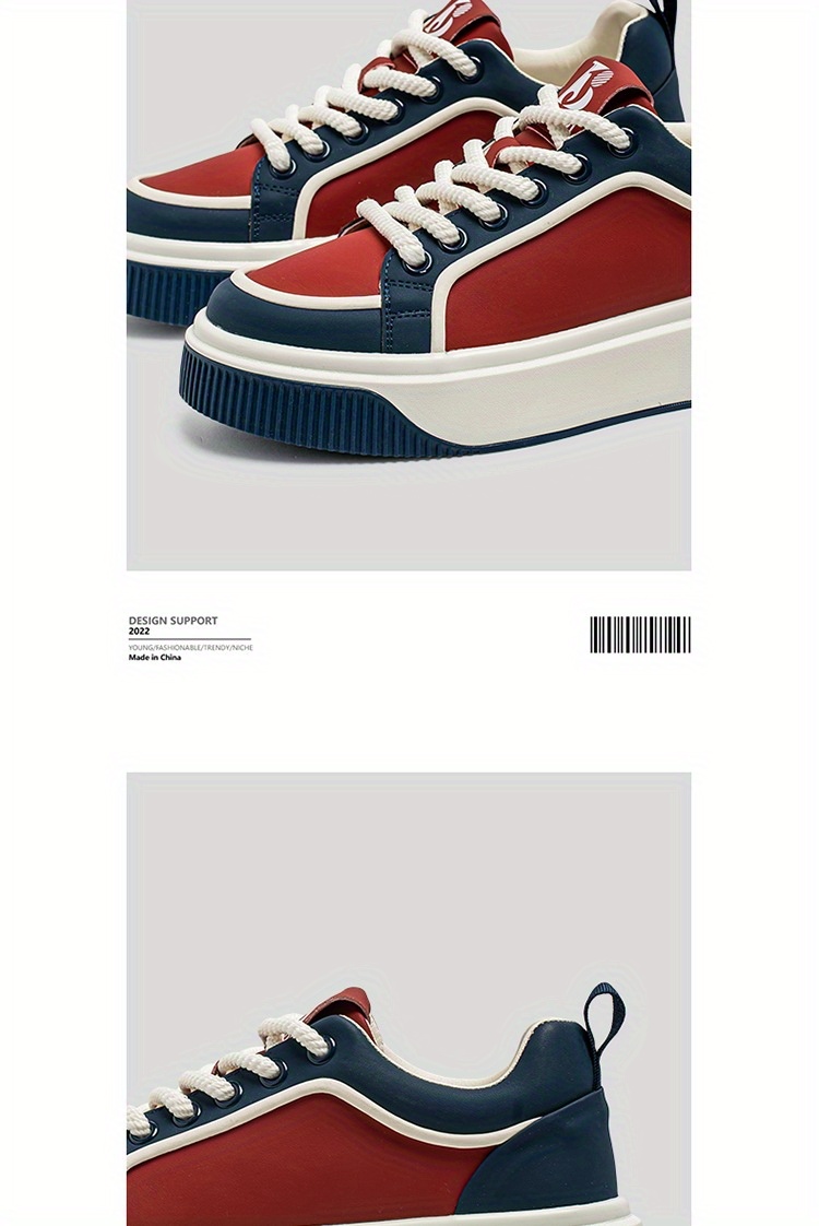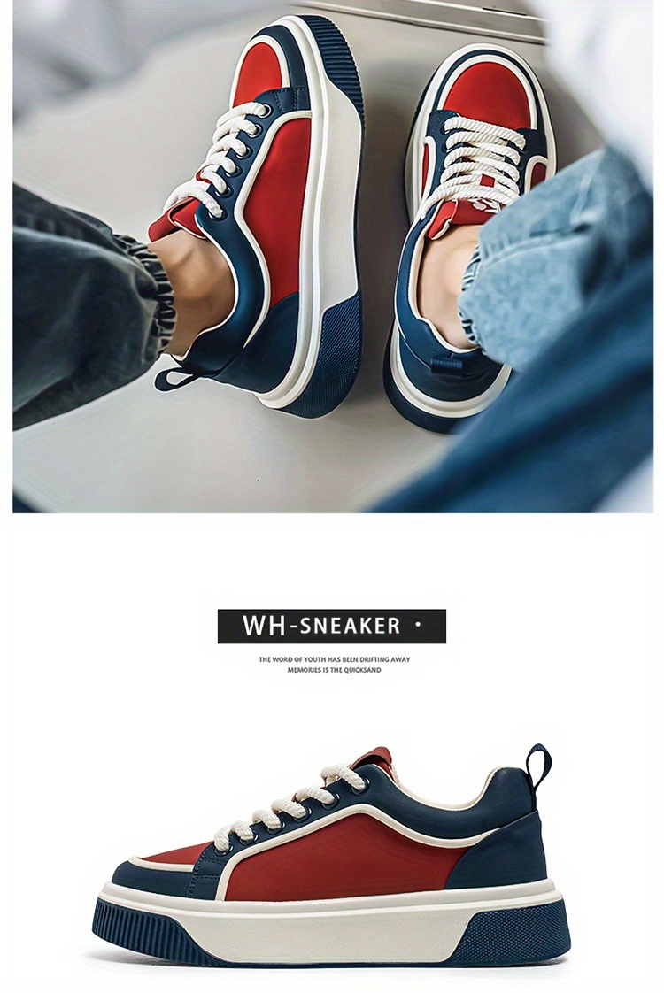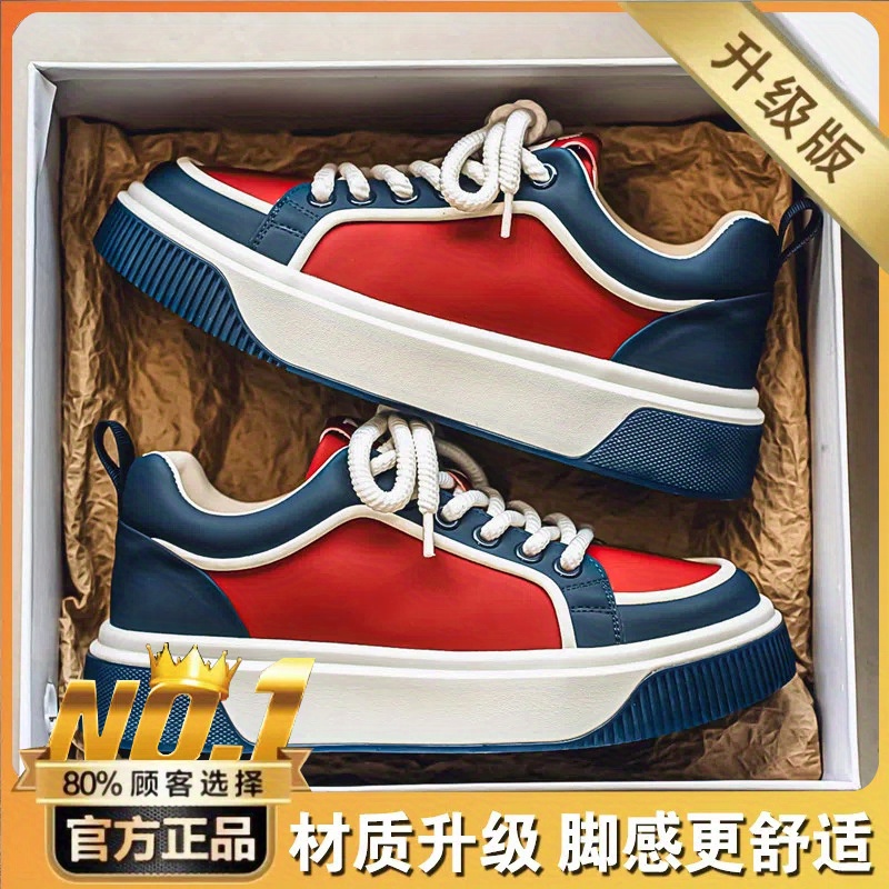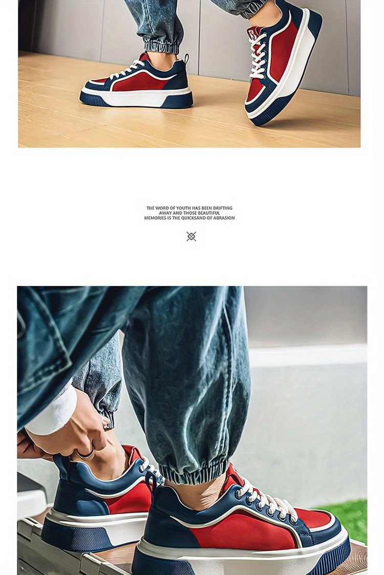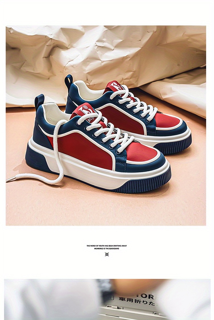 Men'S Chunky Skate Sneakers - Low-Cut Lace-Up Skate Shoes with Anti-Slip Rubber Sole, Red/Blue/White Colorway - Cushioned Insole for All-Day Comfort - Urban Streetwear Shoes for Skateboarding, Gym, Everyday - Durable Synthetic & Mesh Upper - Ideal for Teens & Adults, Gym Footwear, Sporty Design, Breathable Fabric Lining, Comfortable Fit, Active Lifestyle, Summer Trendy, Stylish Stripes, Colorful Striped Design