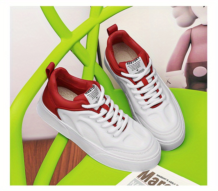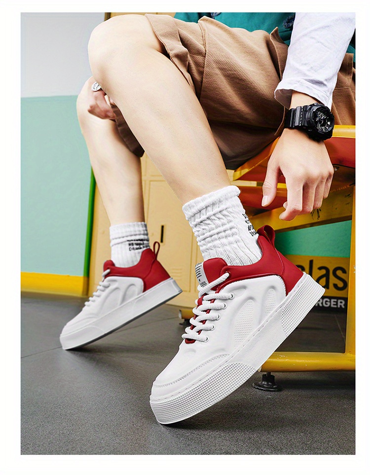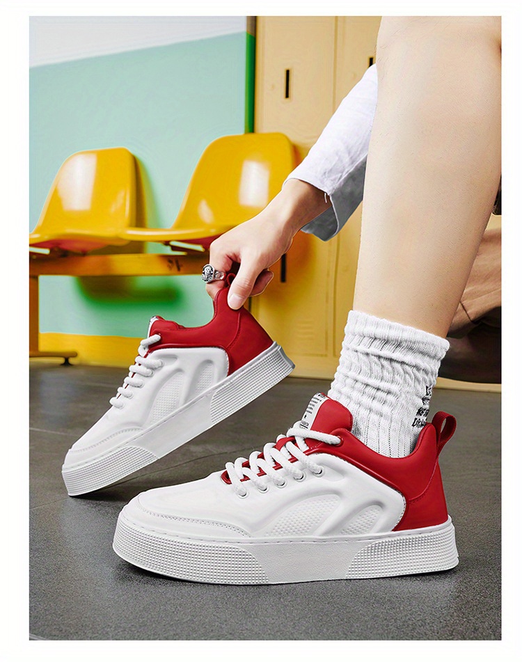 Men's Low-Top Skate Shoes - Breathable Sneakers with Non-Slip Sole, Red & White colorway - Lightweight Cushioned EVA Midsole for Skateboarding, Gym, Everyday - Lace-Up Closure Streetwear Shoes, Urban Fashion, Modern Design, Durable Sole, Versatile Footwear, Street Style