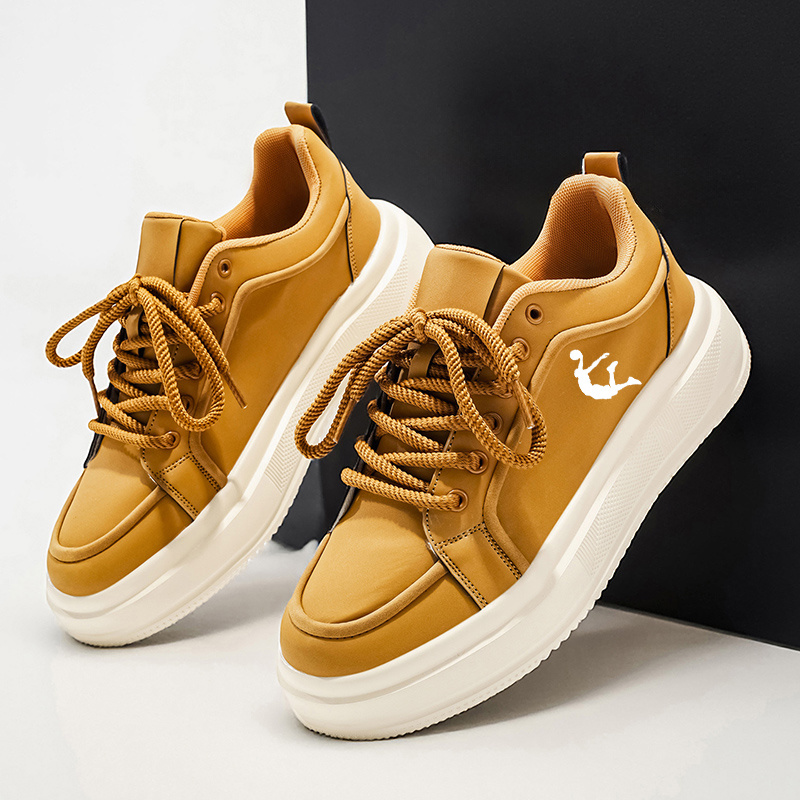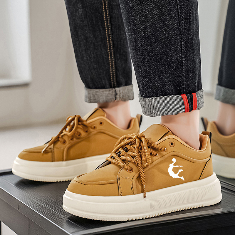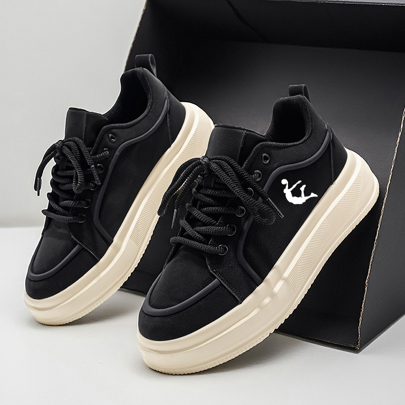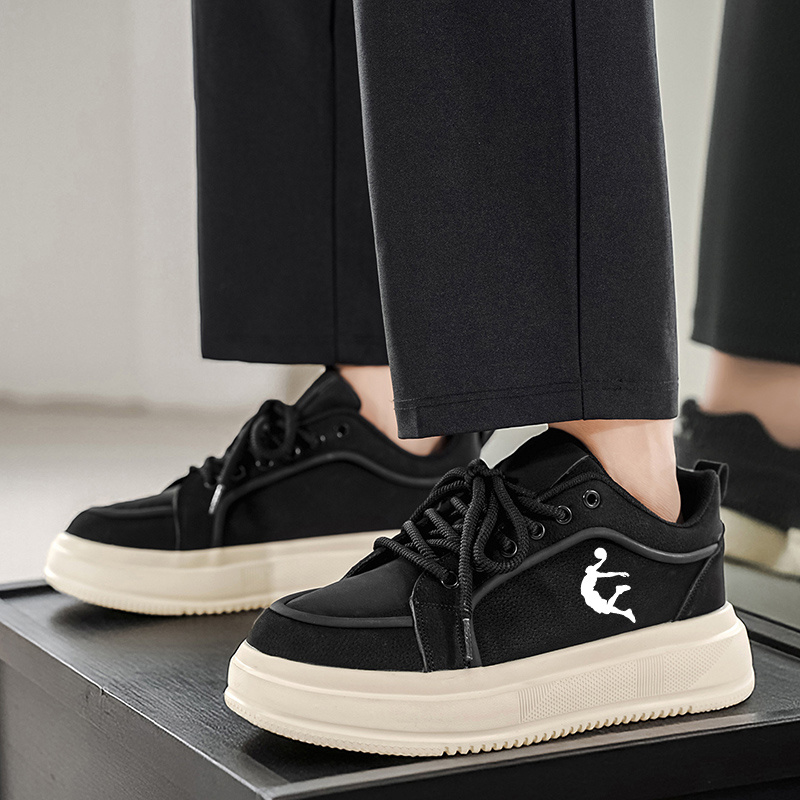 Men'S Thick Sole Skateboarding Shoes, Fashionable Low Top Sneakers, Comfortable Lace-Up Style, Solid Color, Universal Fit, Breathable Fabric Upper, PVC Sole, Ideal for Everyday Wear and Skateboarding