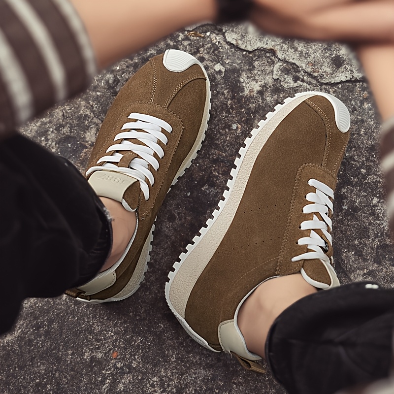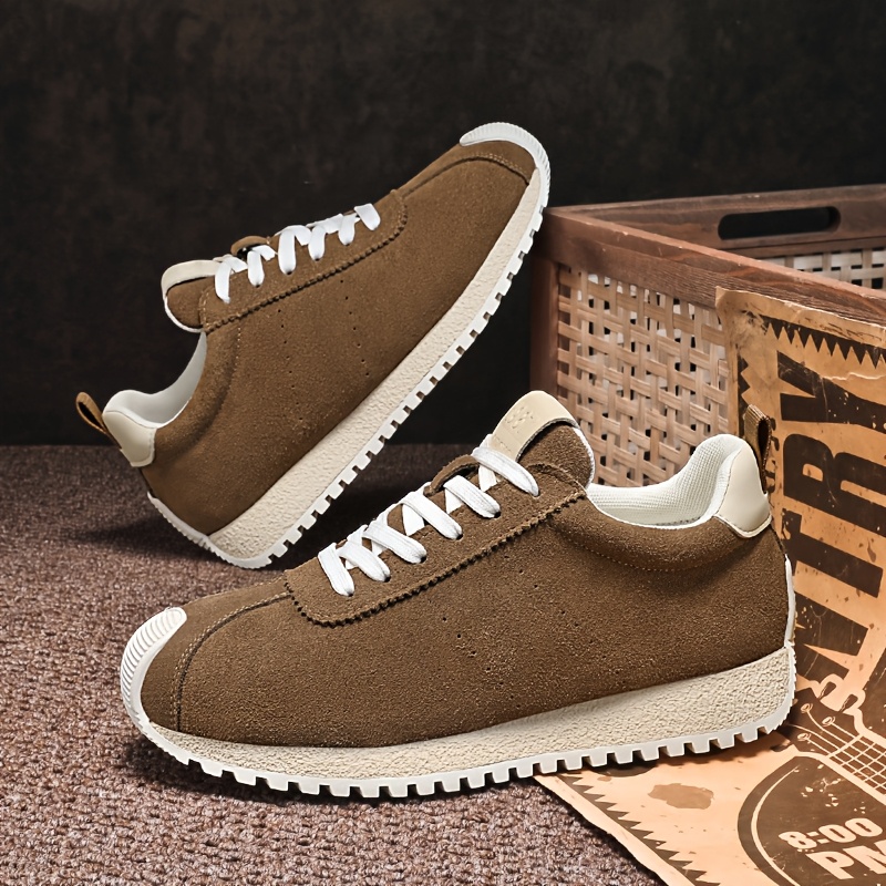 Men's Vintage Street Style Sneakers, Solid Color, Lace-up Design, Round Toe, with Distressed Details, Fabric Insole and Lining, Suitable for Hiking, Daily Wear, Casual and Party Occasions