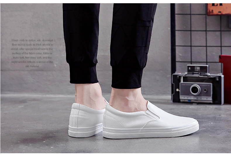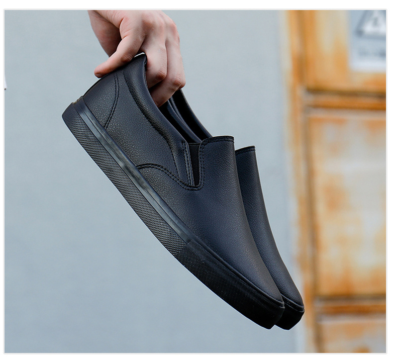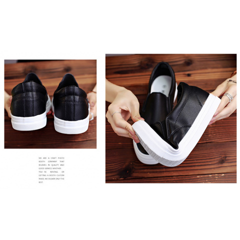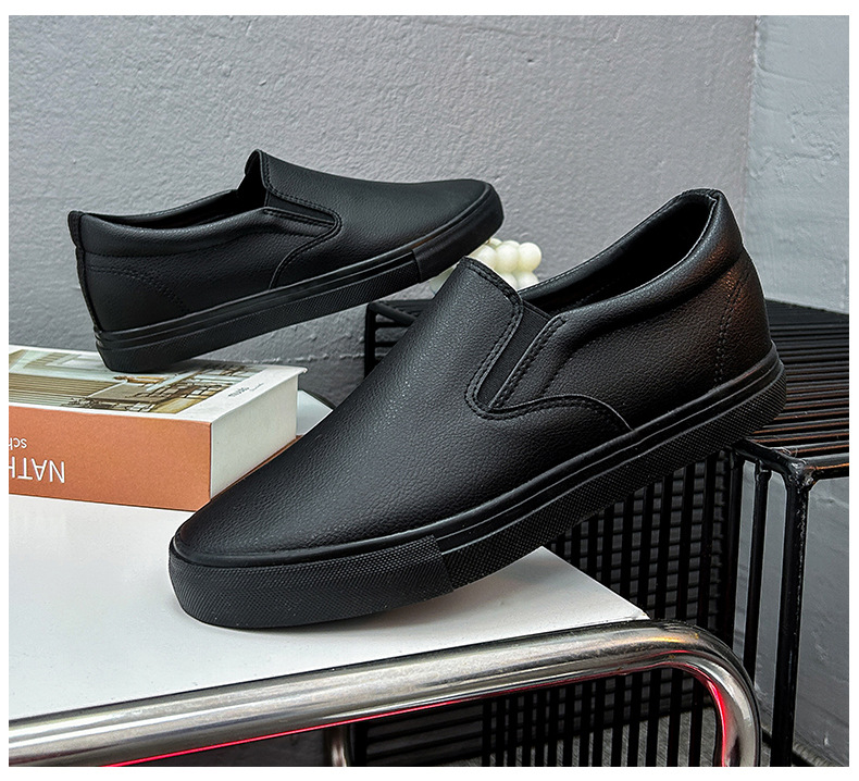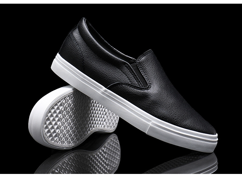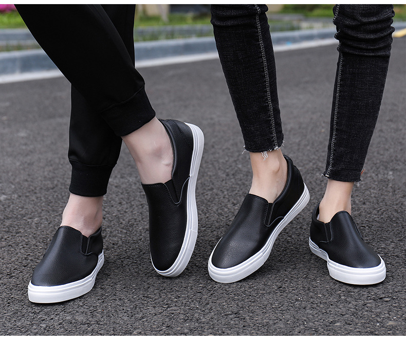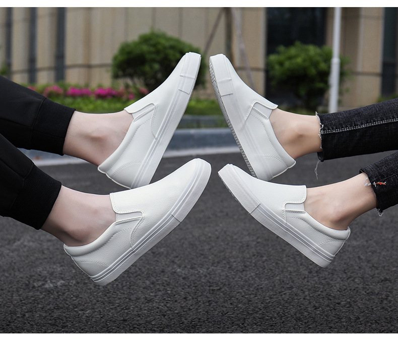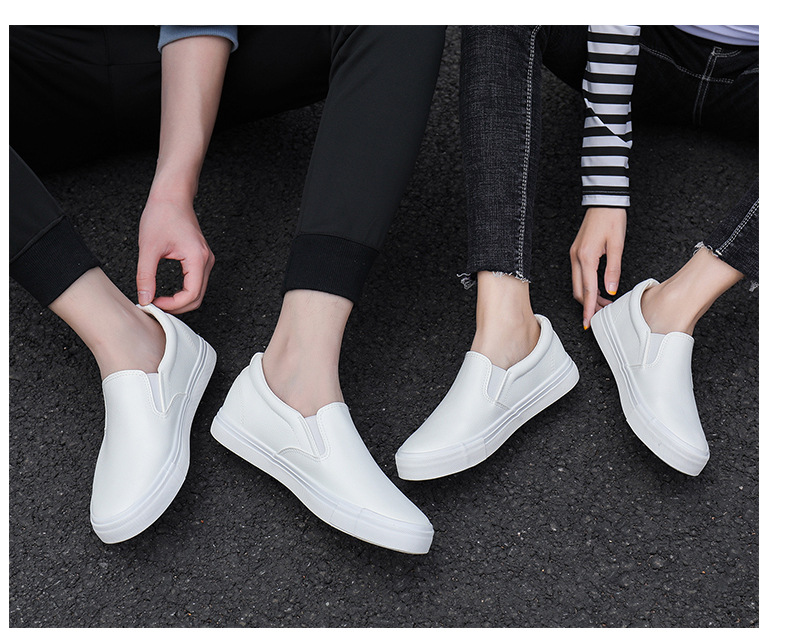 Slip-On White Sneakers for Men, Women & Youth - Unisex PU -like Upper & Rubber Sole Low-Top Casual Shoes, Soft Cushioned, Round Toe Dance-Ready Lazy-On Footwear (No Laces) - Couple Matching Black/White