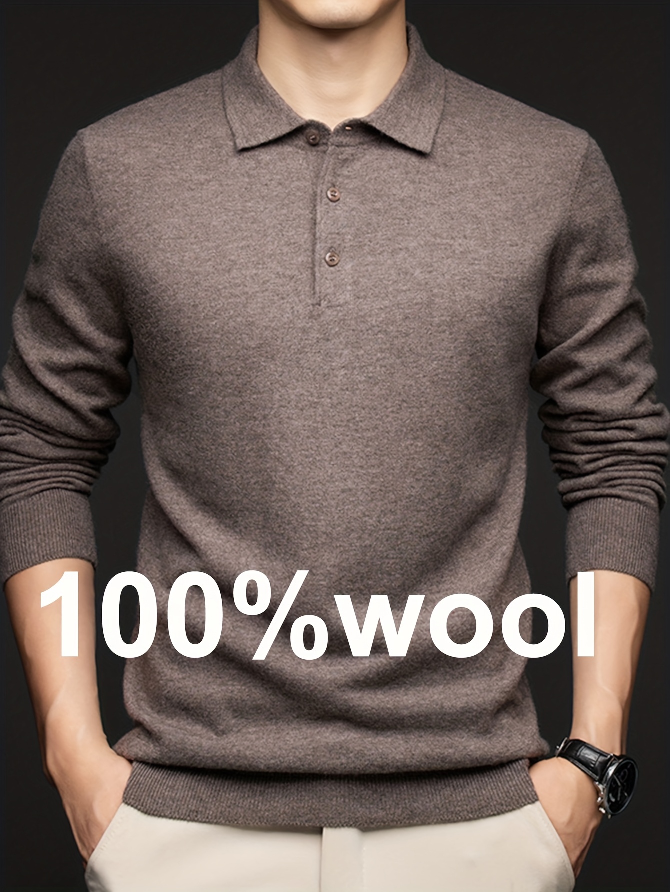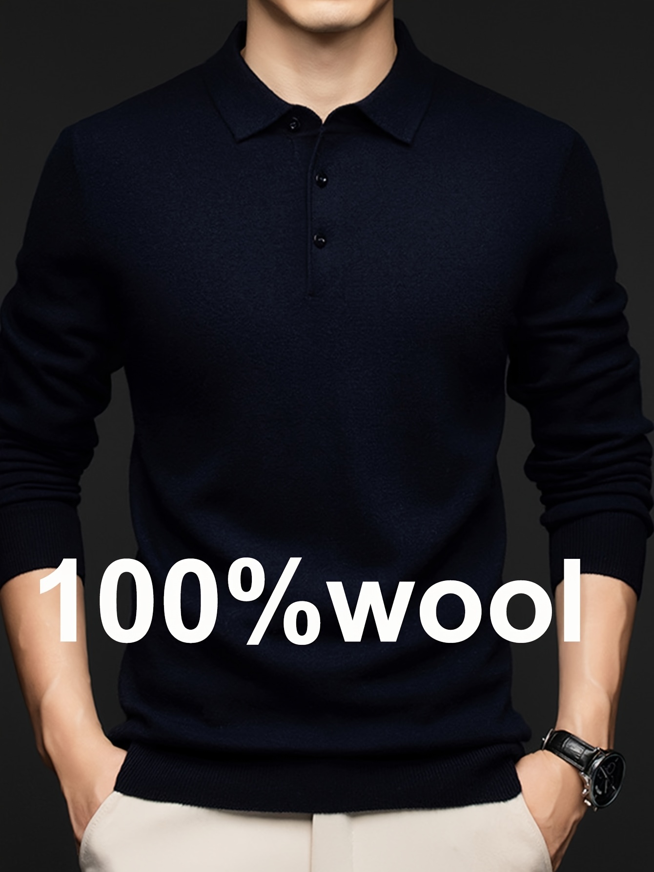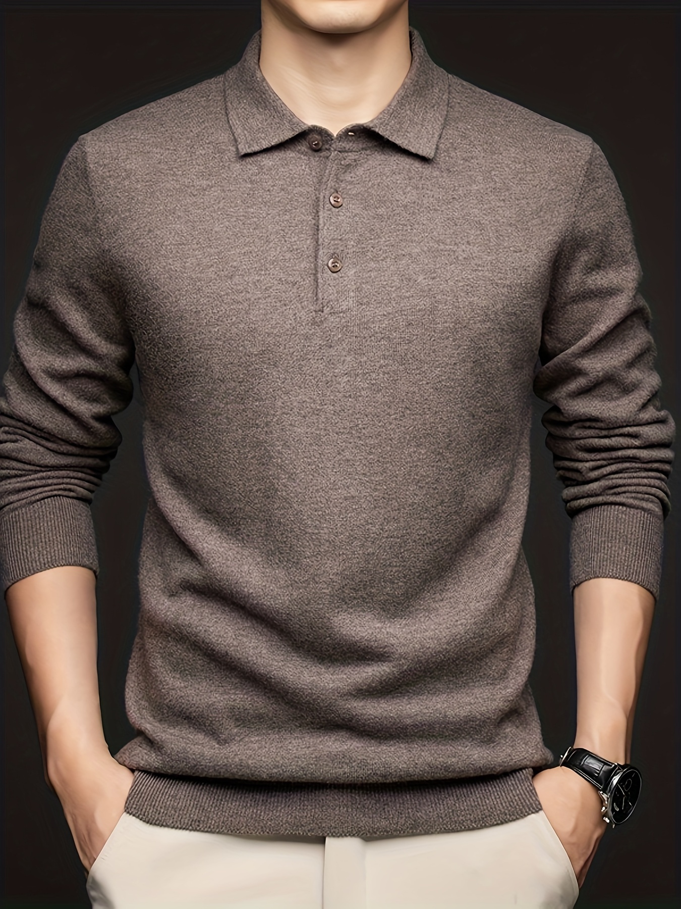 100% Thickened Sweater Commuting Turn- Collar Solid Color Warm High-End Sweater Men's Inner Wear