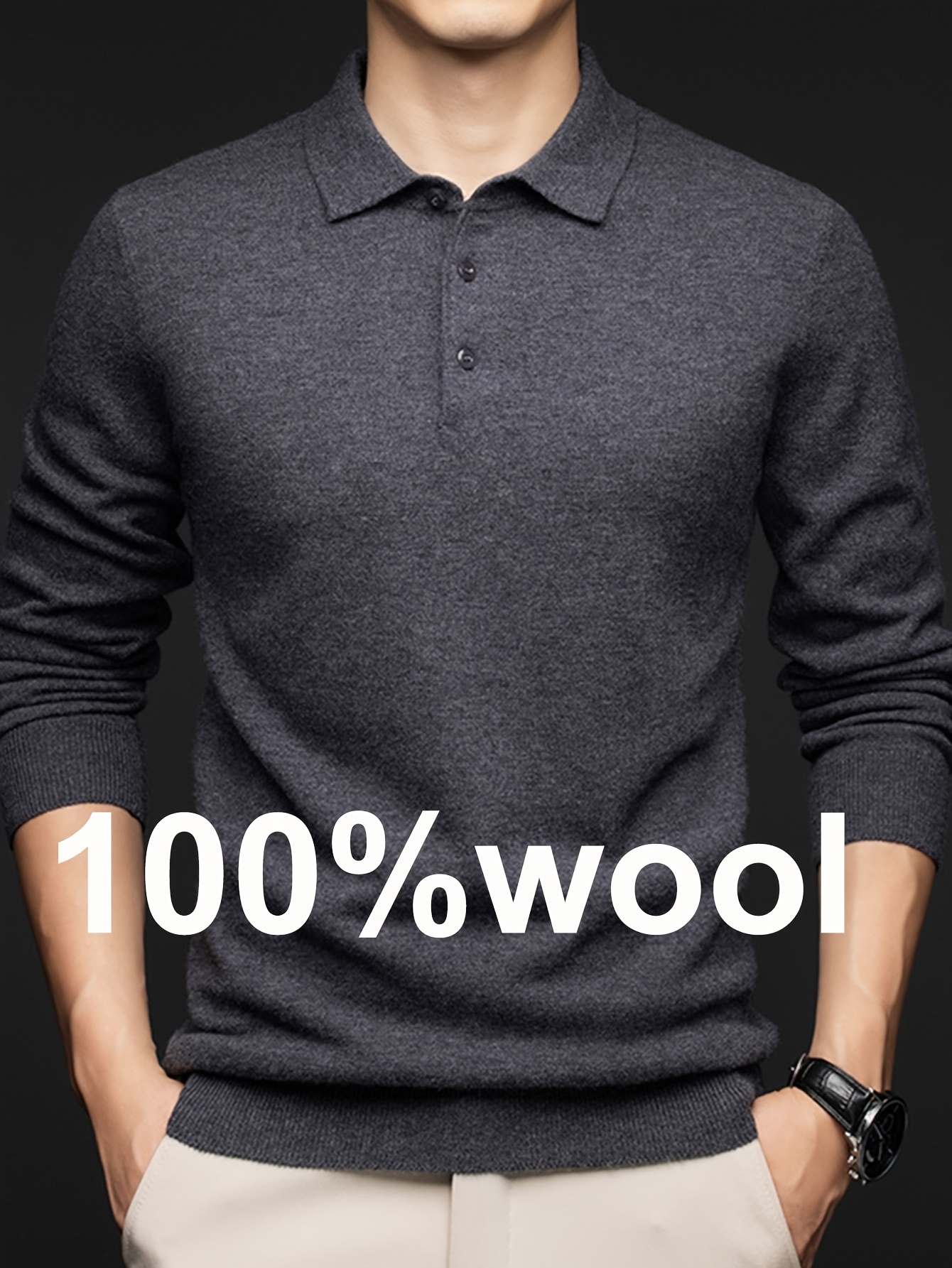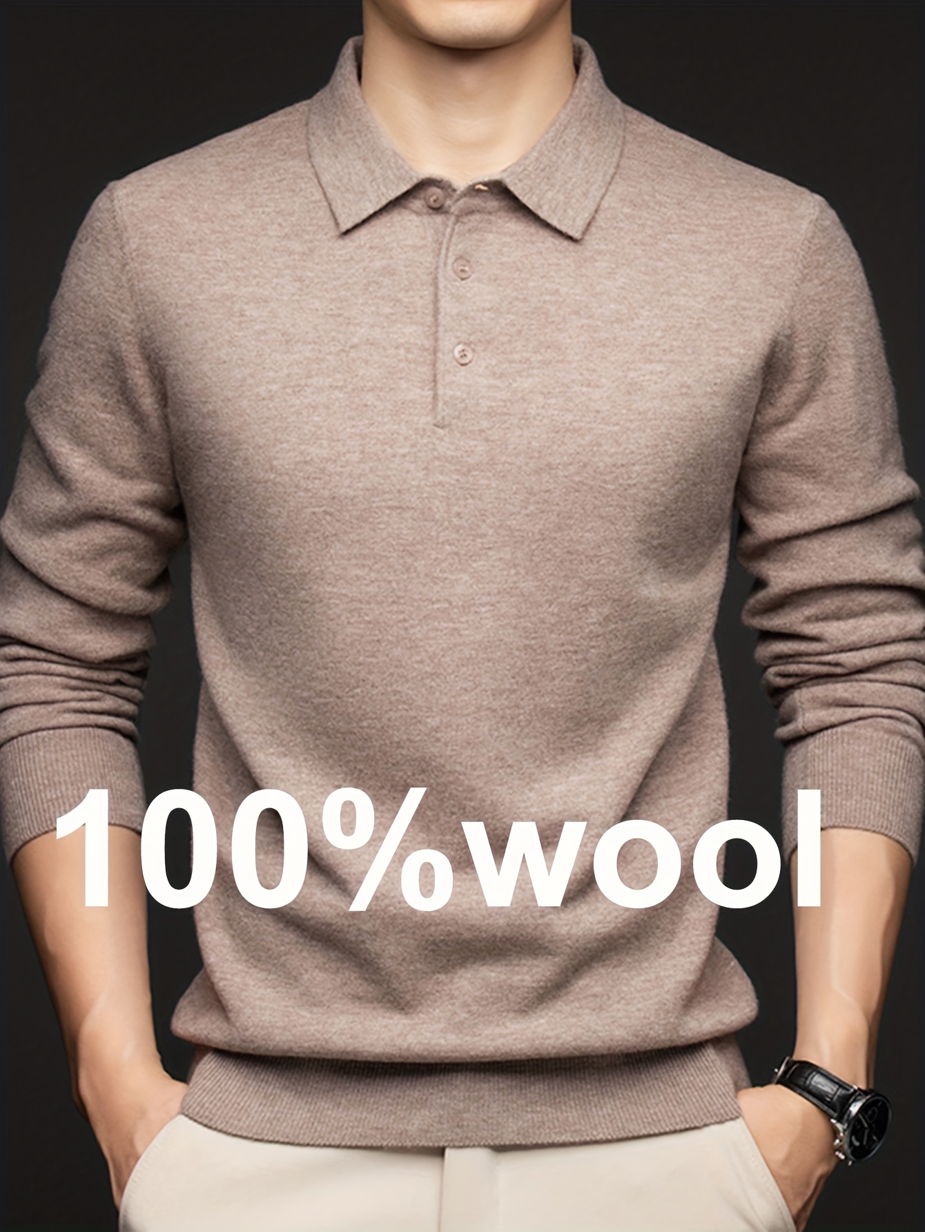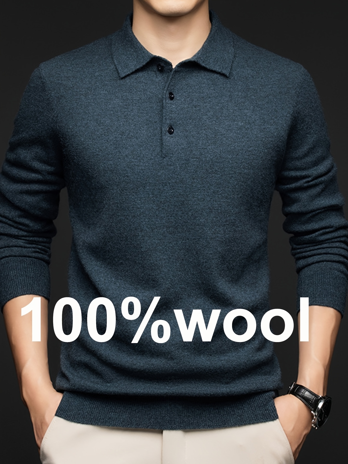 100% Thickened Sweater Commuting Turn- Collar Solid Color Warm High-End Sweater Men's Inner Wear