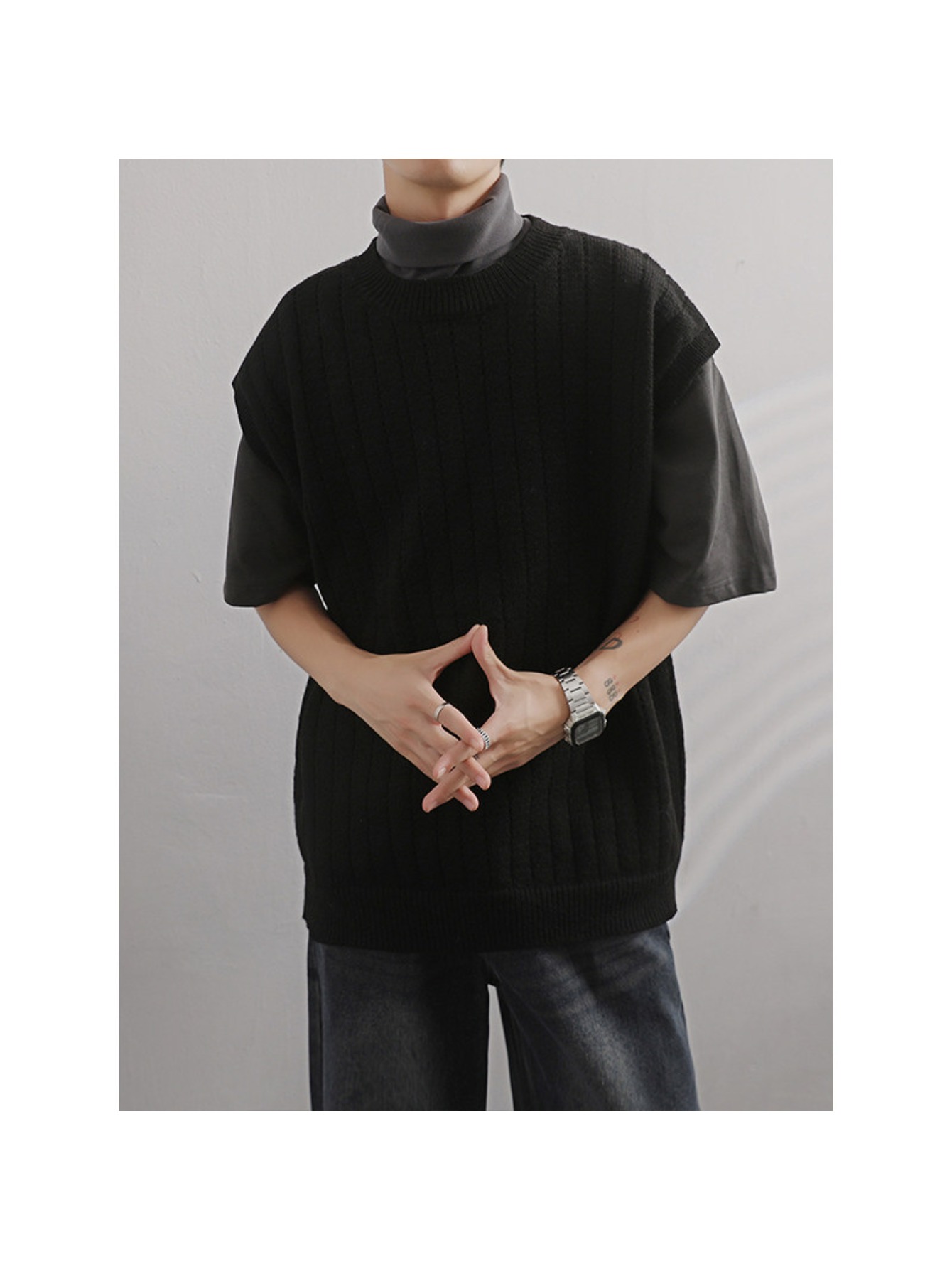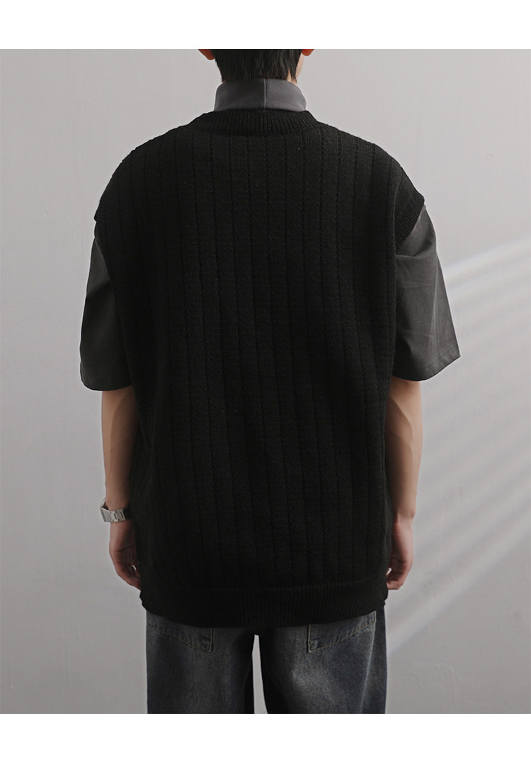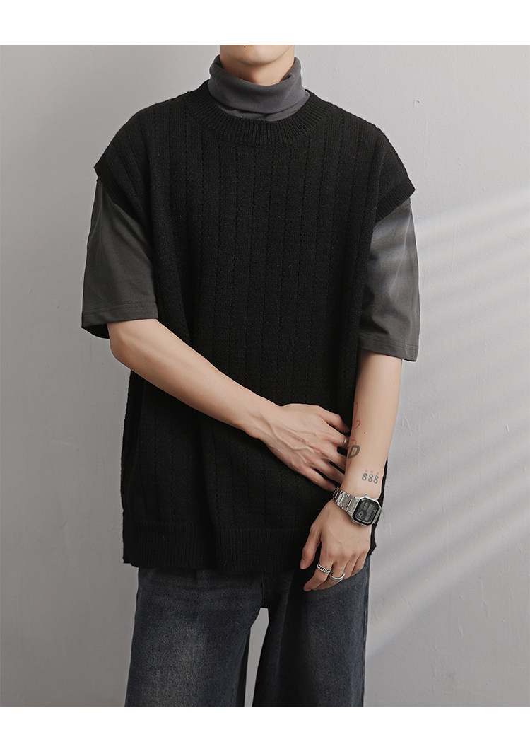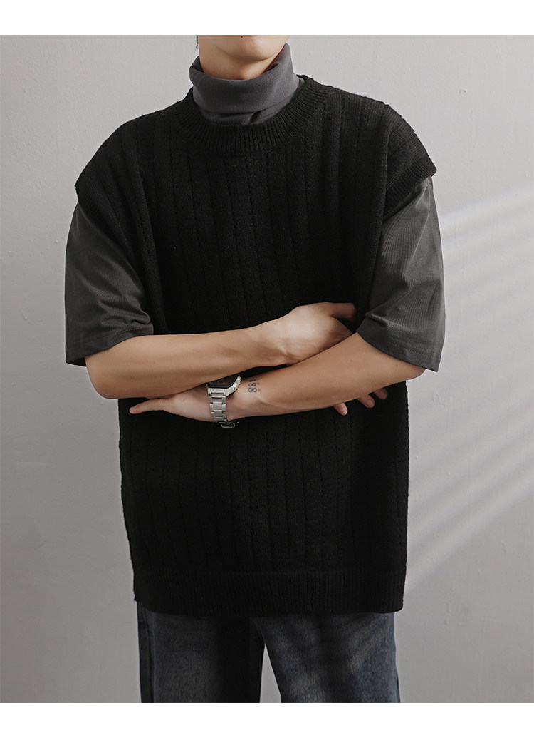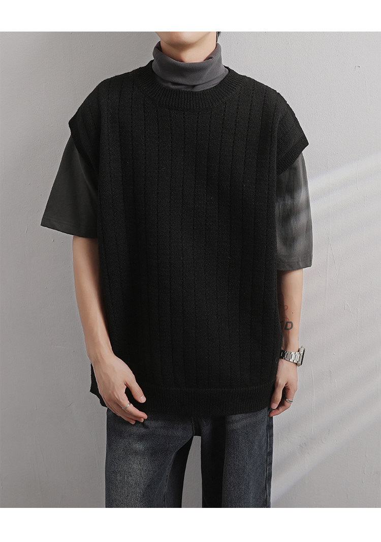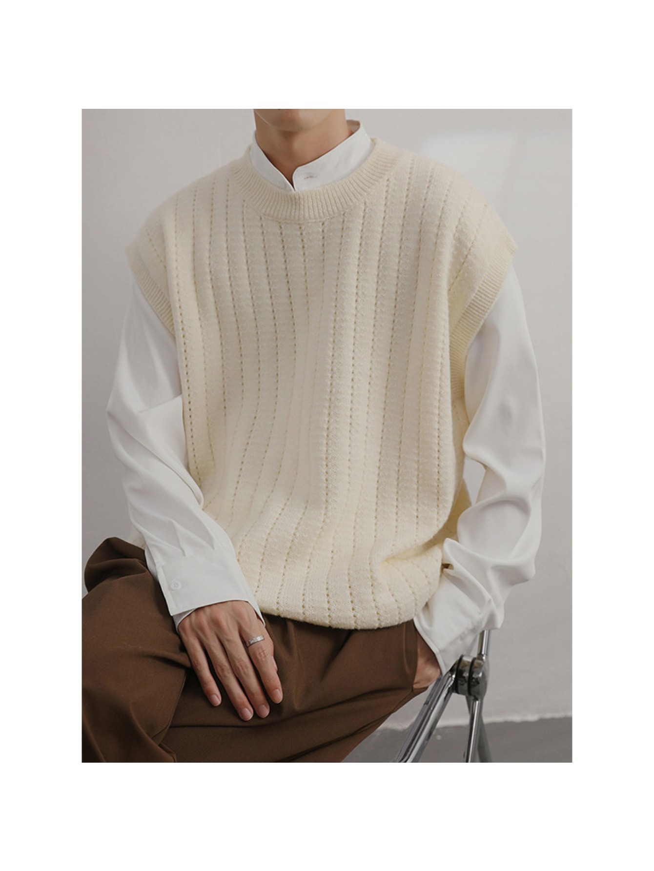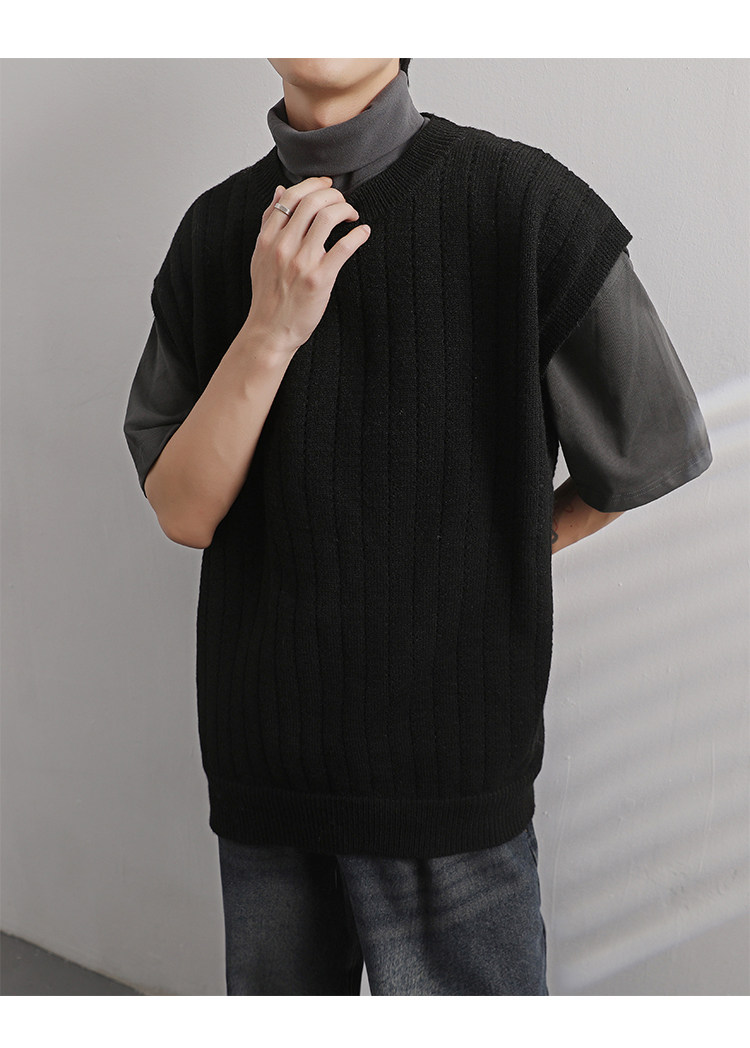 Men'S Cashmere Crew Neck Vest | Cream Solid Color with Vertical Textured Knit, Oversized Fit, Casual Lazy Style, Versatile Couple'S Sleeveless Waistcoat for Fall/Winter