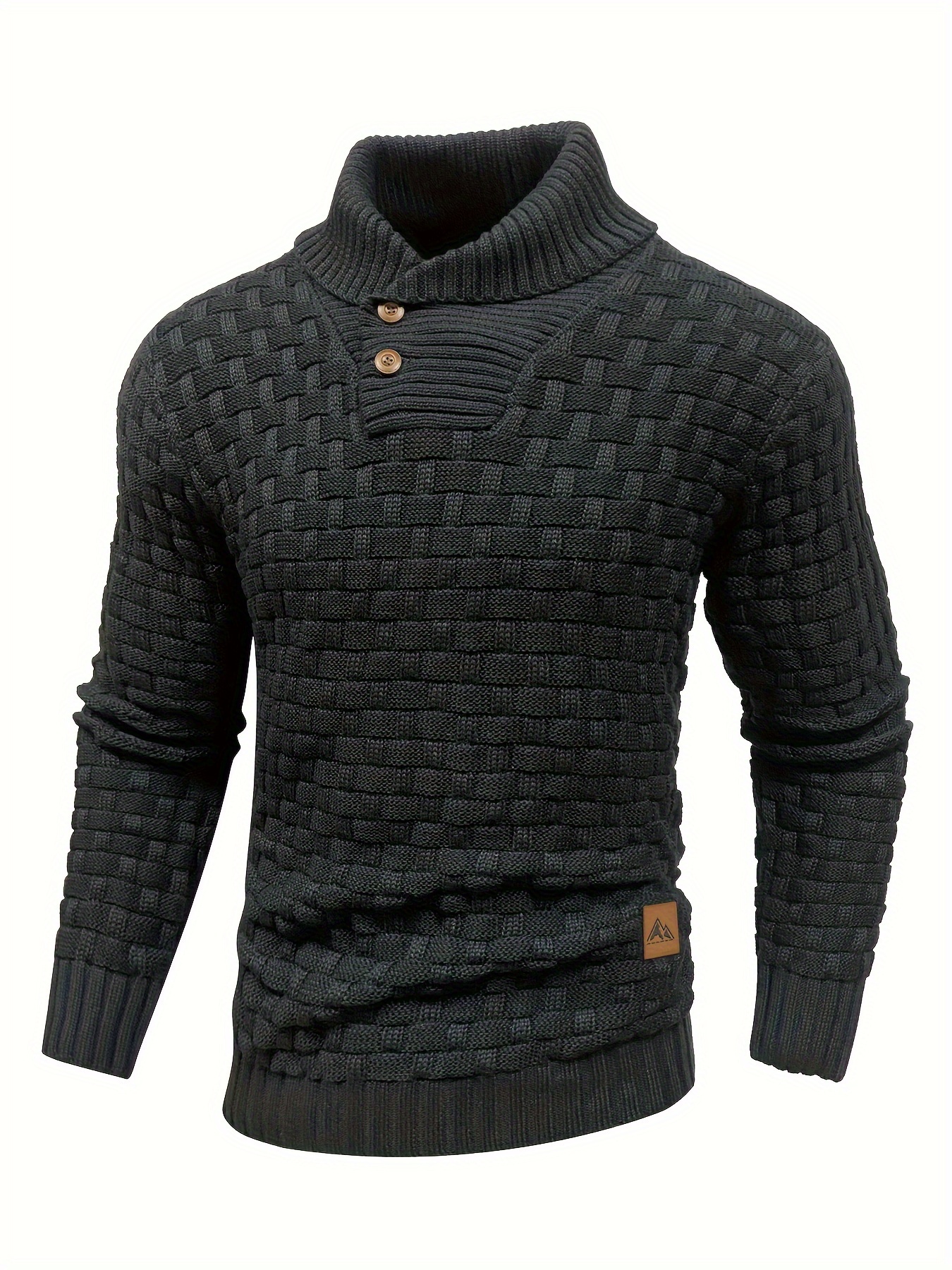 Men's Casual Waffle Knit Lapel Button Sweater