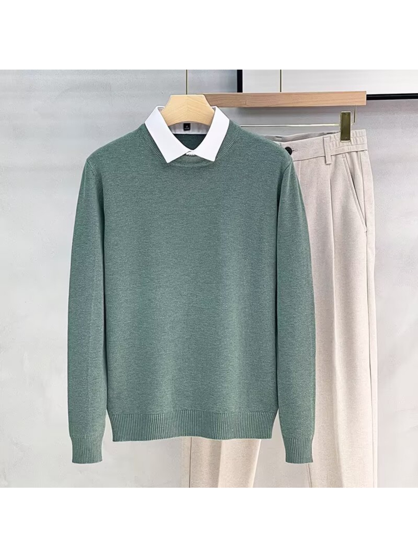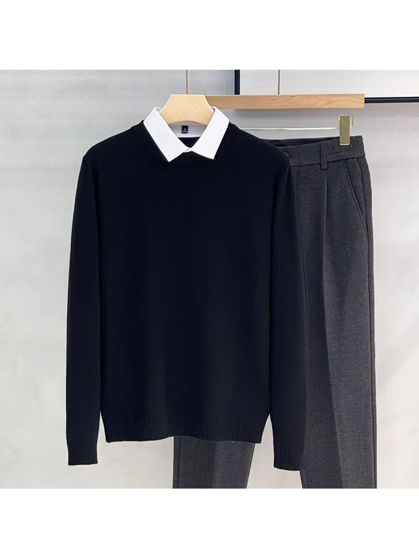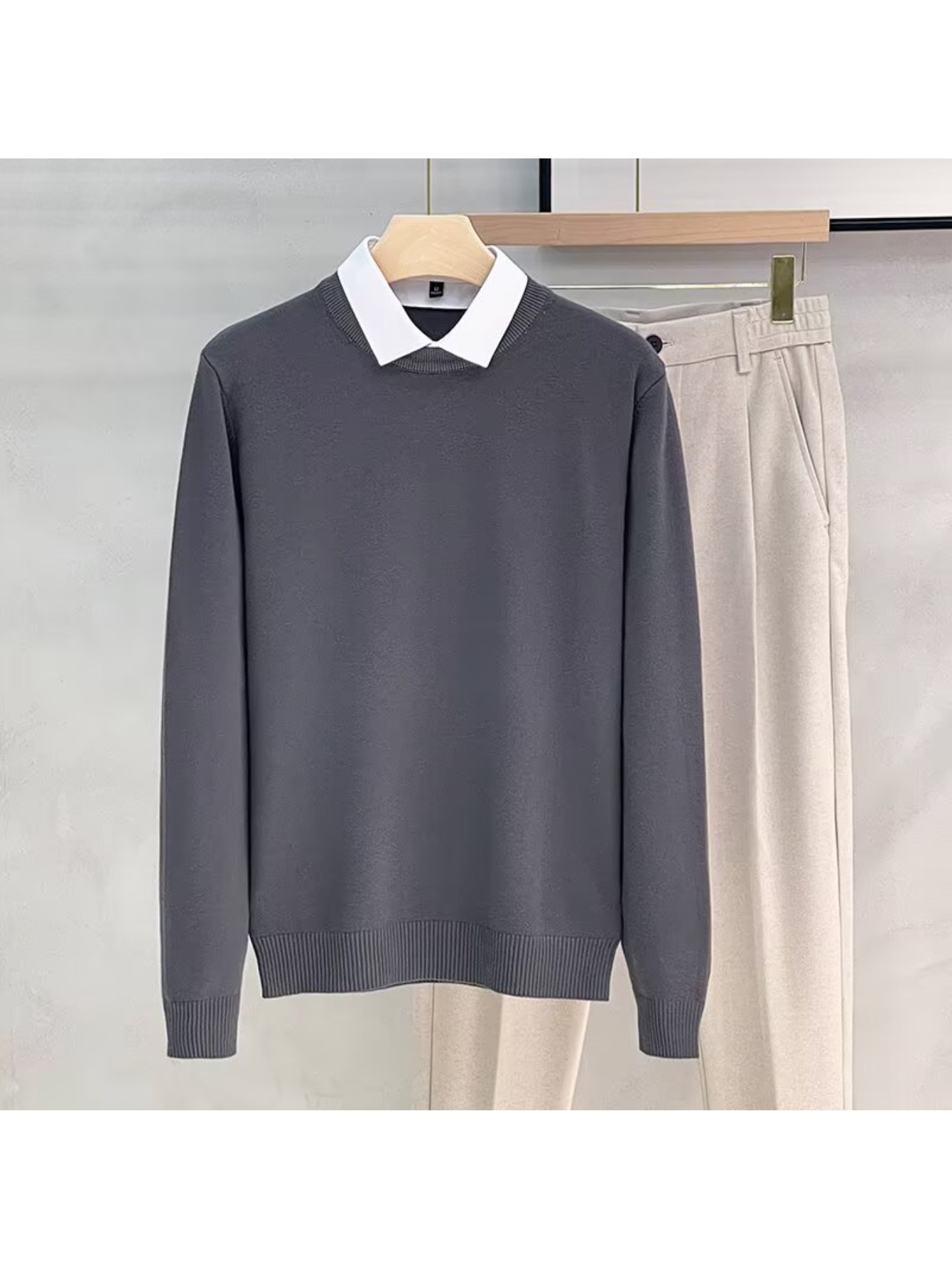 Men's New Korean Style Knit Sweater with Detachable Shirt Collar - Fake 2pcs Layering Top, Slim Fit Round Neck Sweaters Suitable for Fall/Winter, Black/Grey/Beige, Casual & -Casual Wear