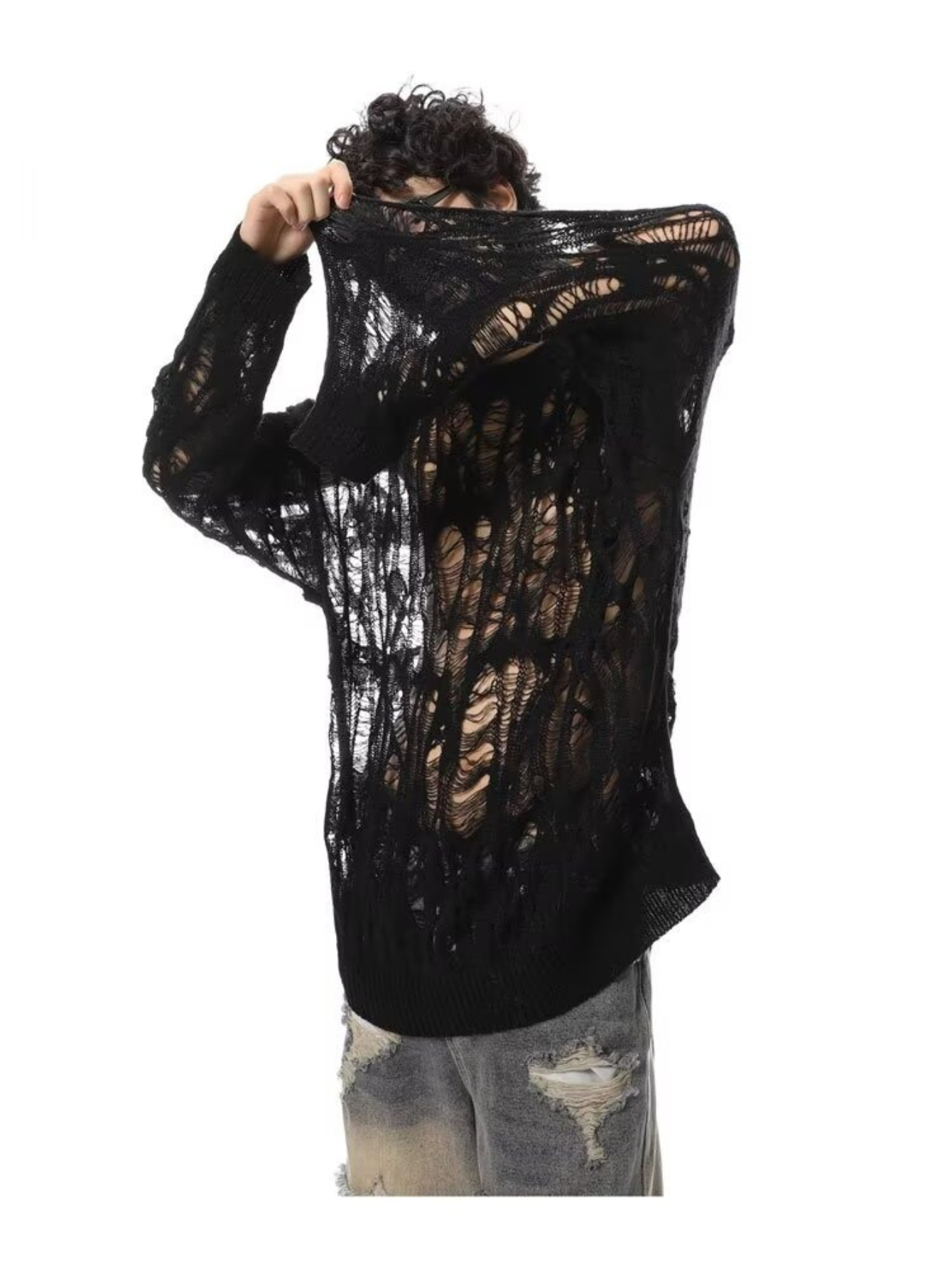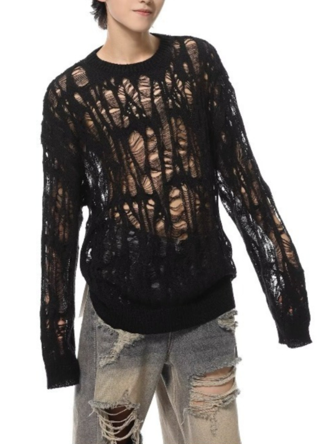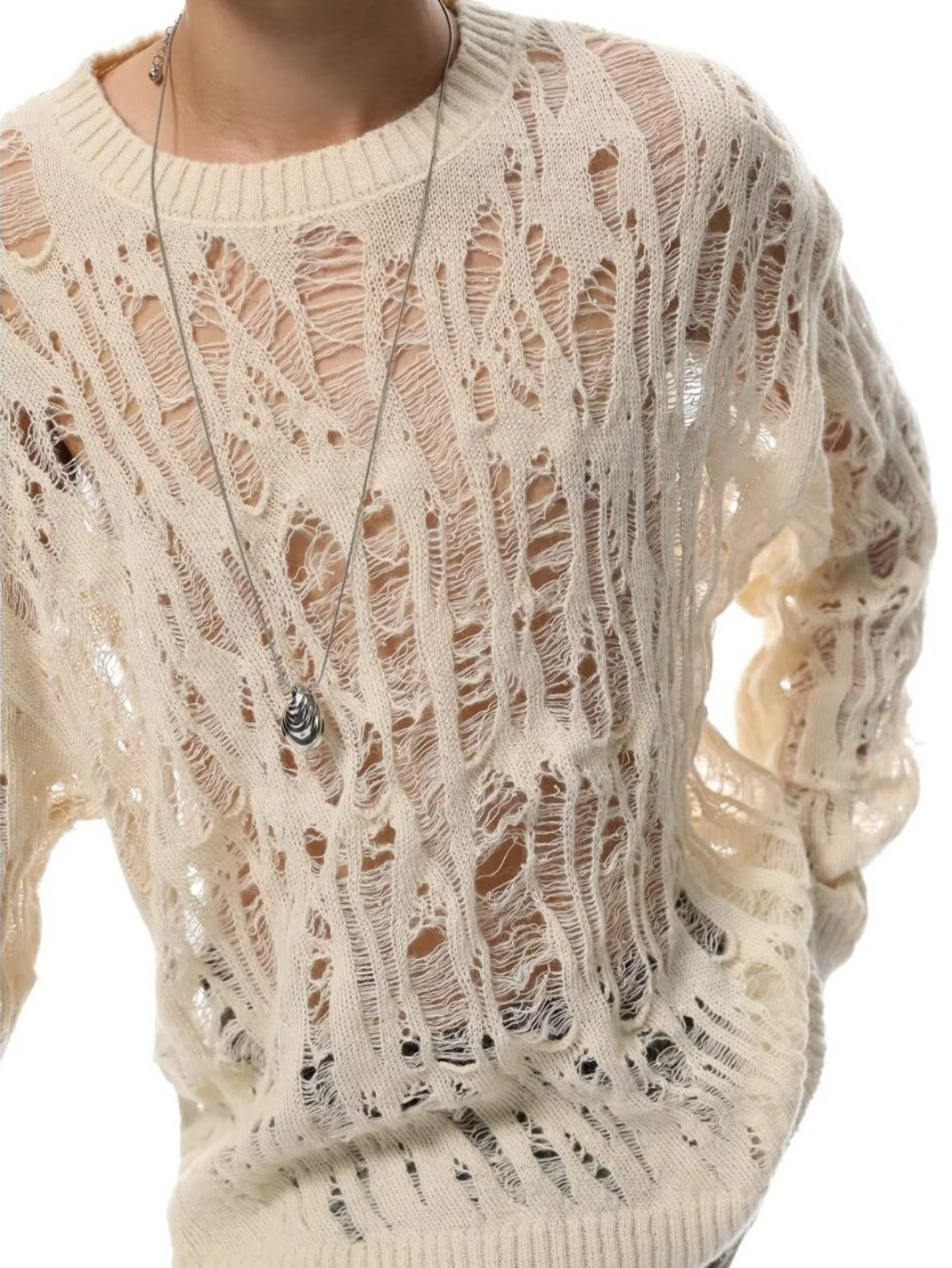 Men'S Pullover with Unique Hollow Design, Niche Style, Sun- Sweater, Korean Casual Lazy Fashion, Perfect for Layering