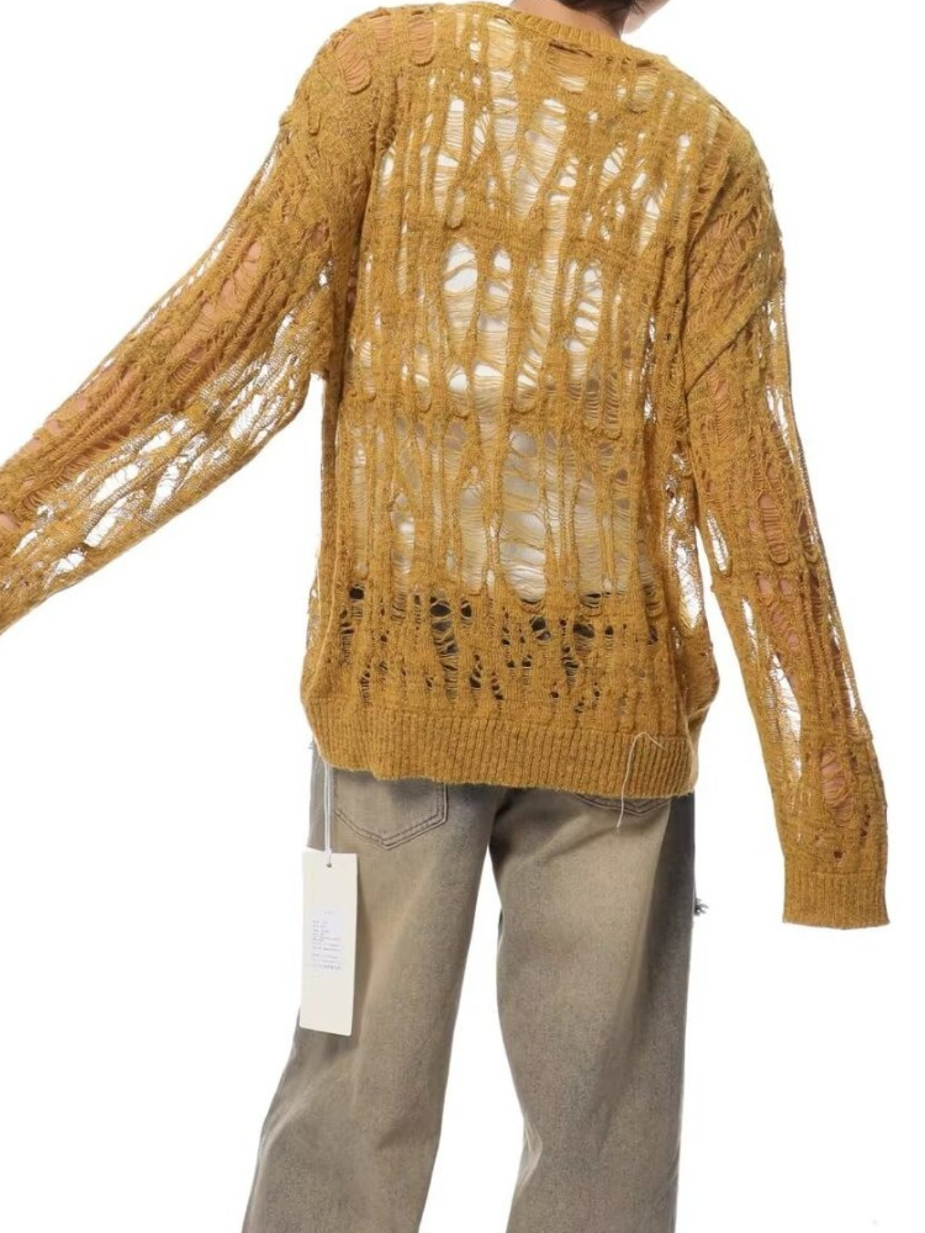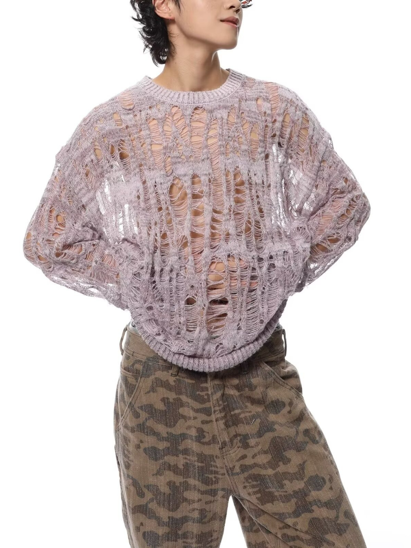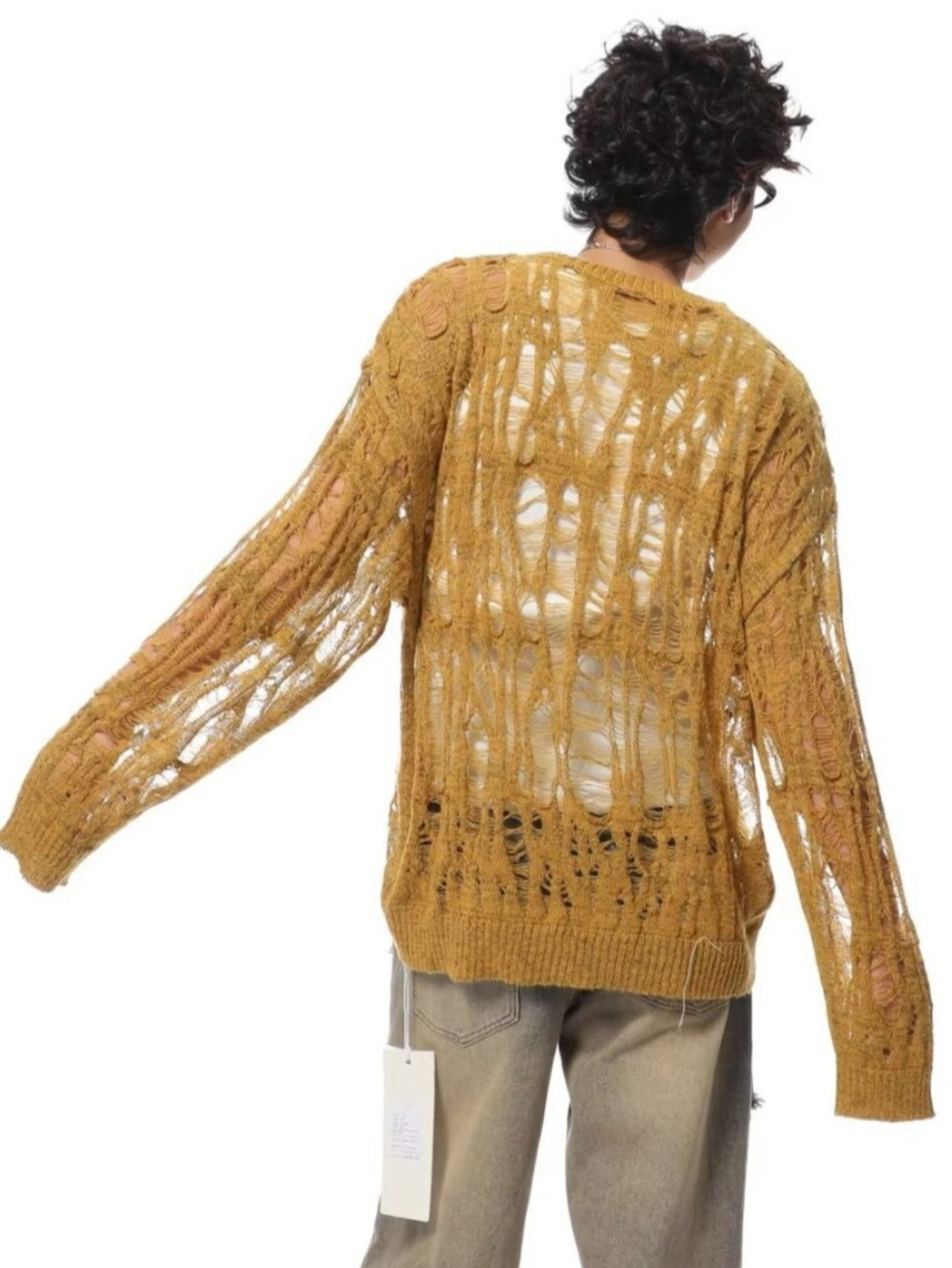 Men'S Pullover with Unique Hollow Design, Niche Style, Sun- Sweater, Korean Casual Lazy Fashion, Perfect for Layering