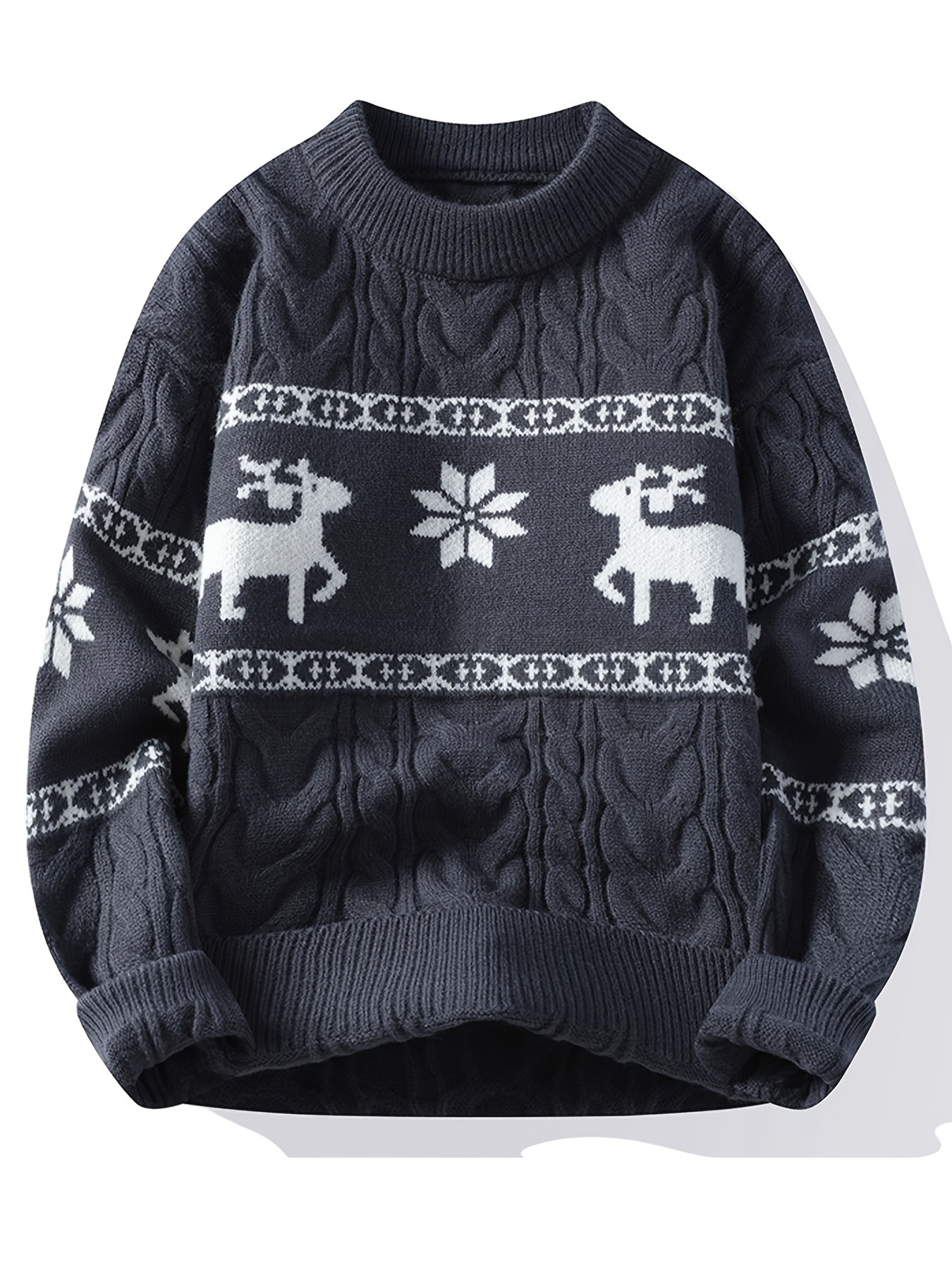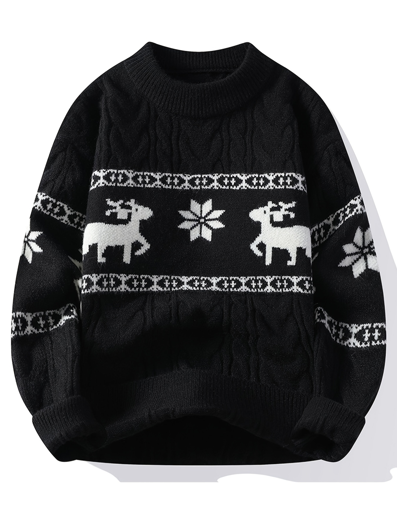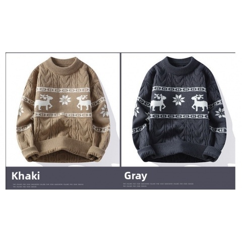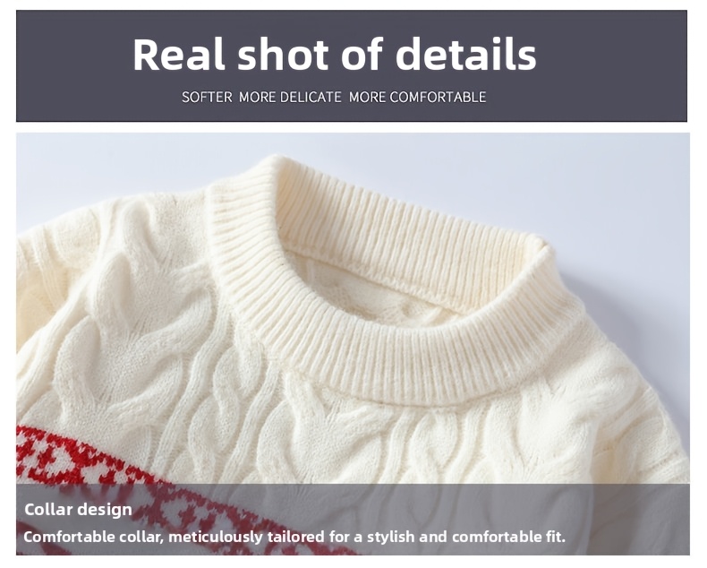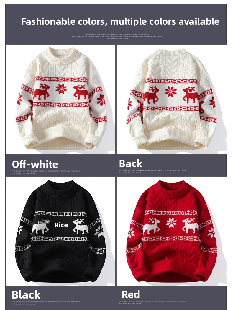 Men's Winter Warm Sweater - Casual Round Neck Long Sleeve Jacquard Pullover, Pattern Soft Thermal Sweaters for Weather, Tax-Free Free Shipping (Hand Washable)
