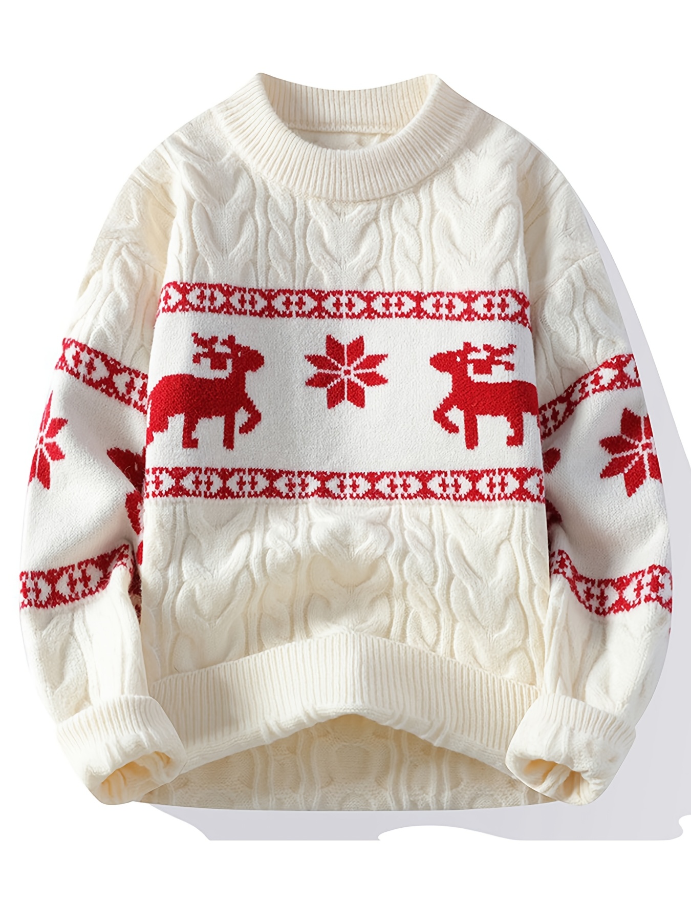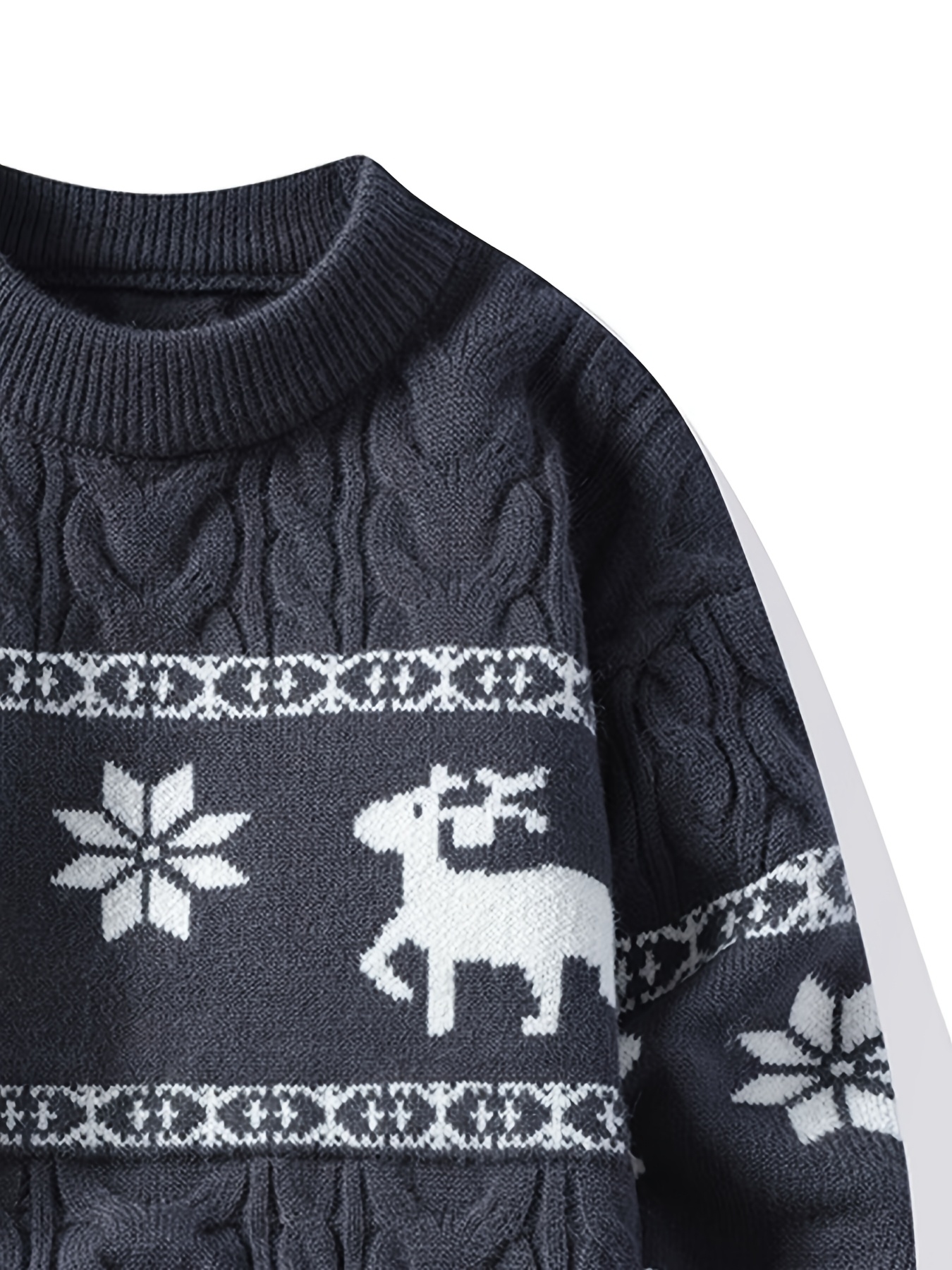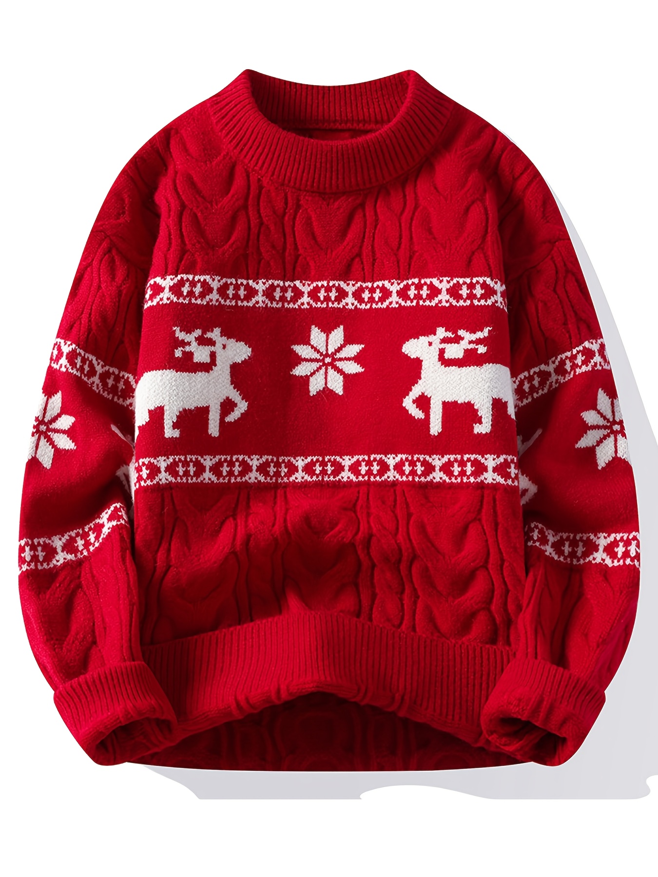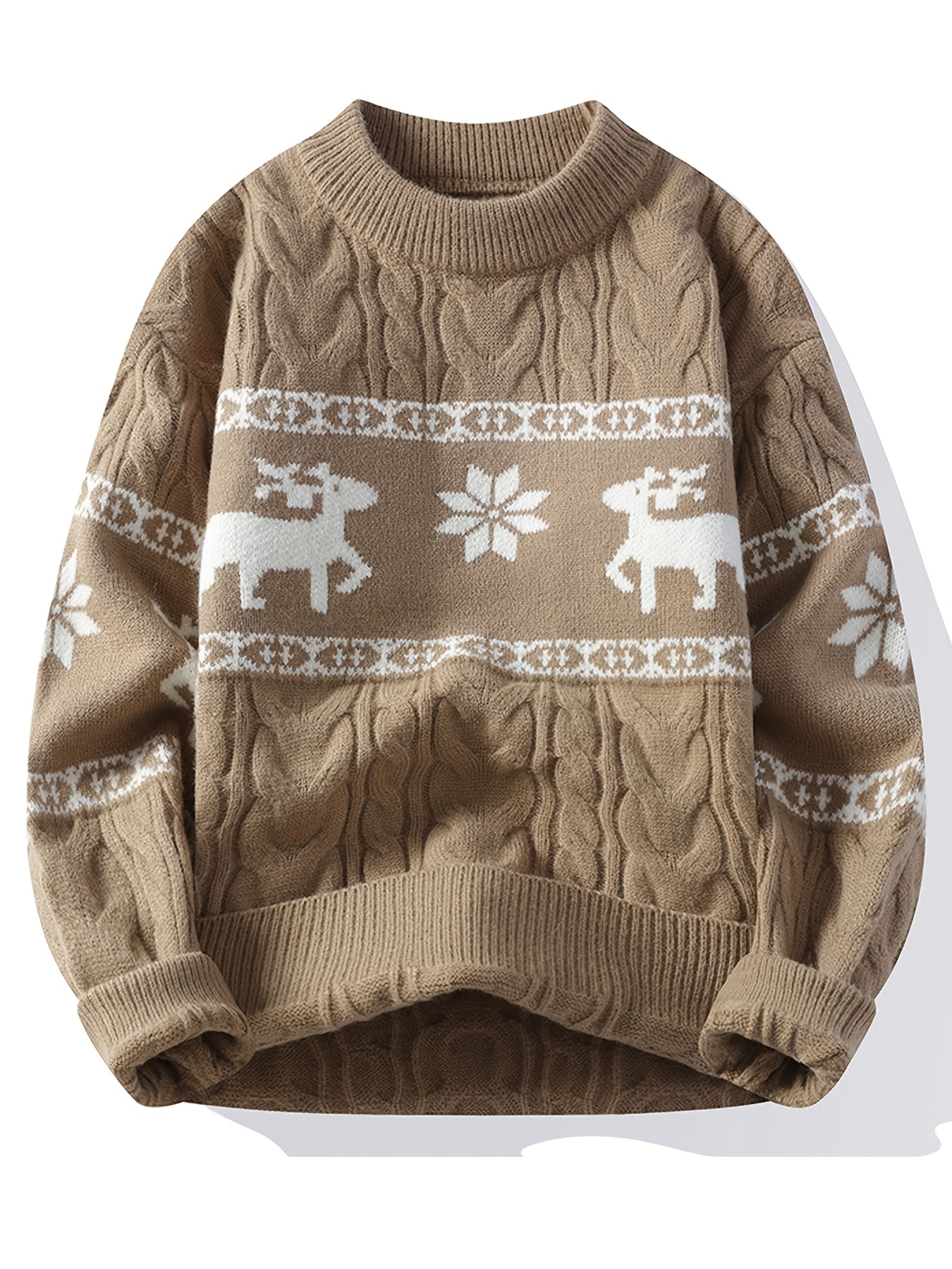 Men's Winter Warm Sweater - Casual Round Neck Long Sleeve Jacquard Pullover, Pattern Soft Thermal Sweaters for Weather, Tax-Free Free Shipping (Hand Washable)