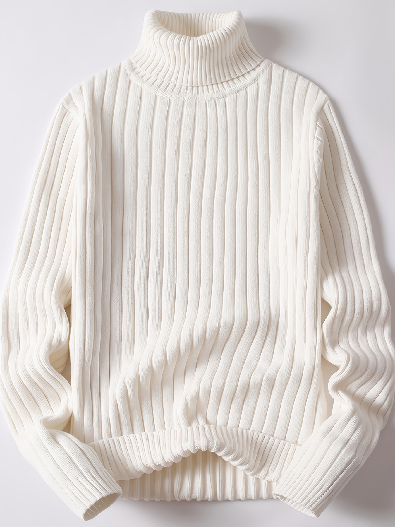 Men's Thick Winter Sweater - White/Beige High Collar Pullover, Loose High Collar Bottom, Machine Washable Warm Sweater Tank Top, Suitable for Casual And Formal Wear Duty Free Shipping
