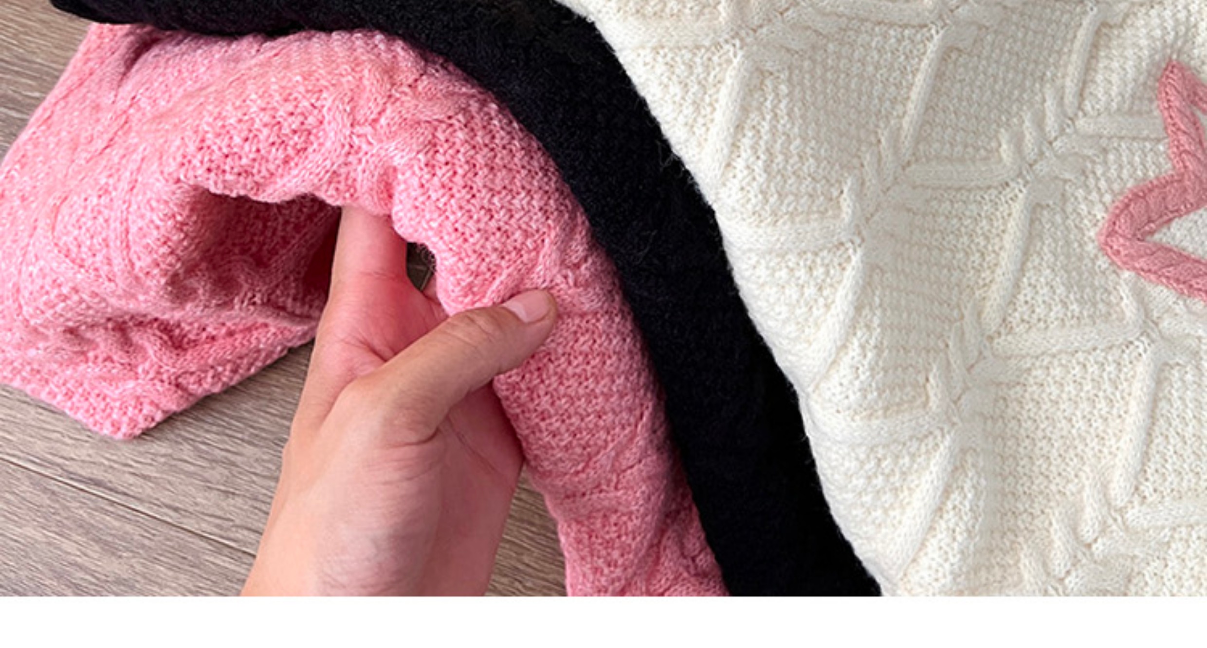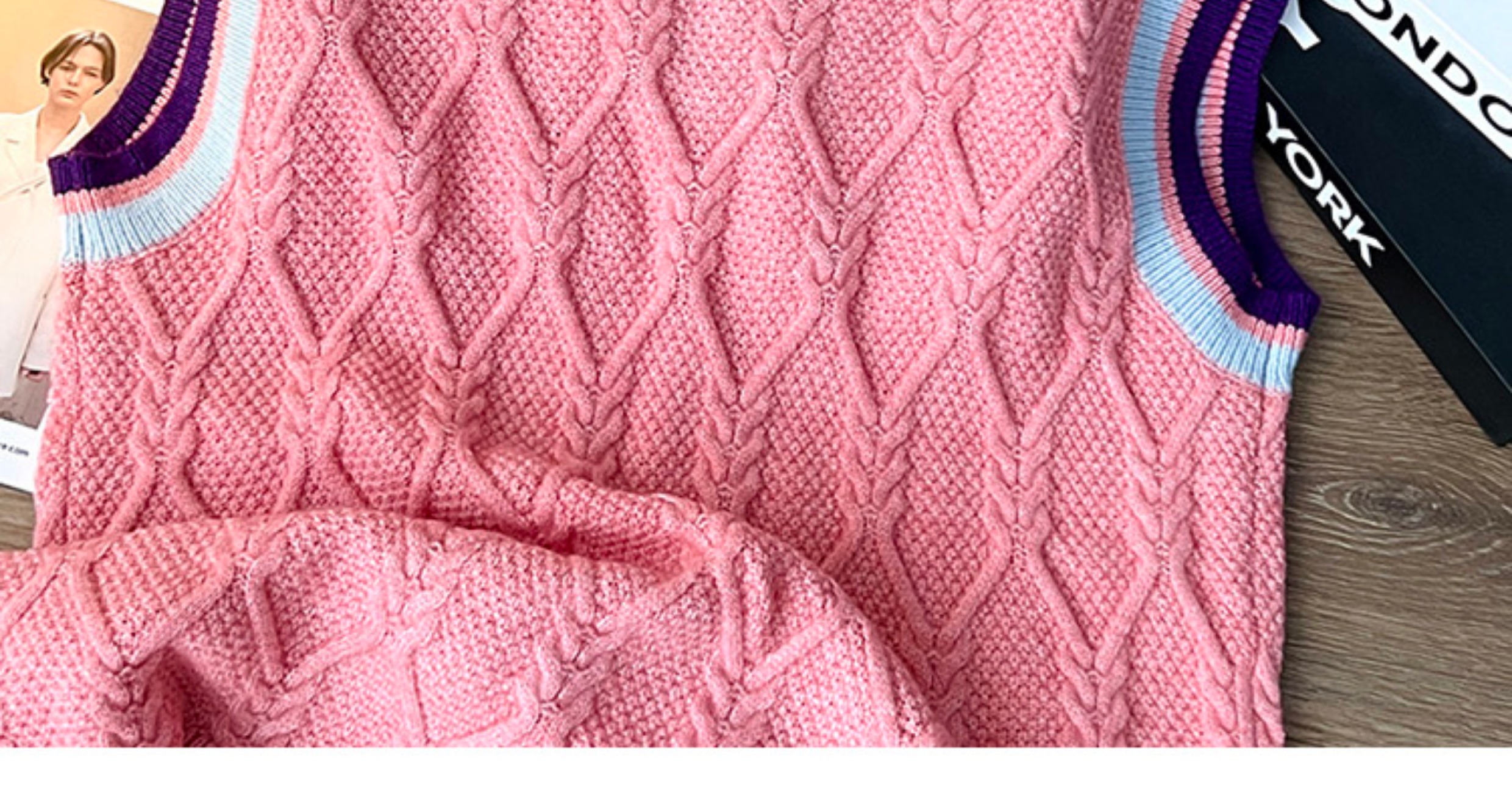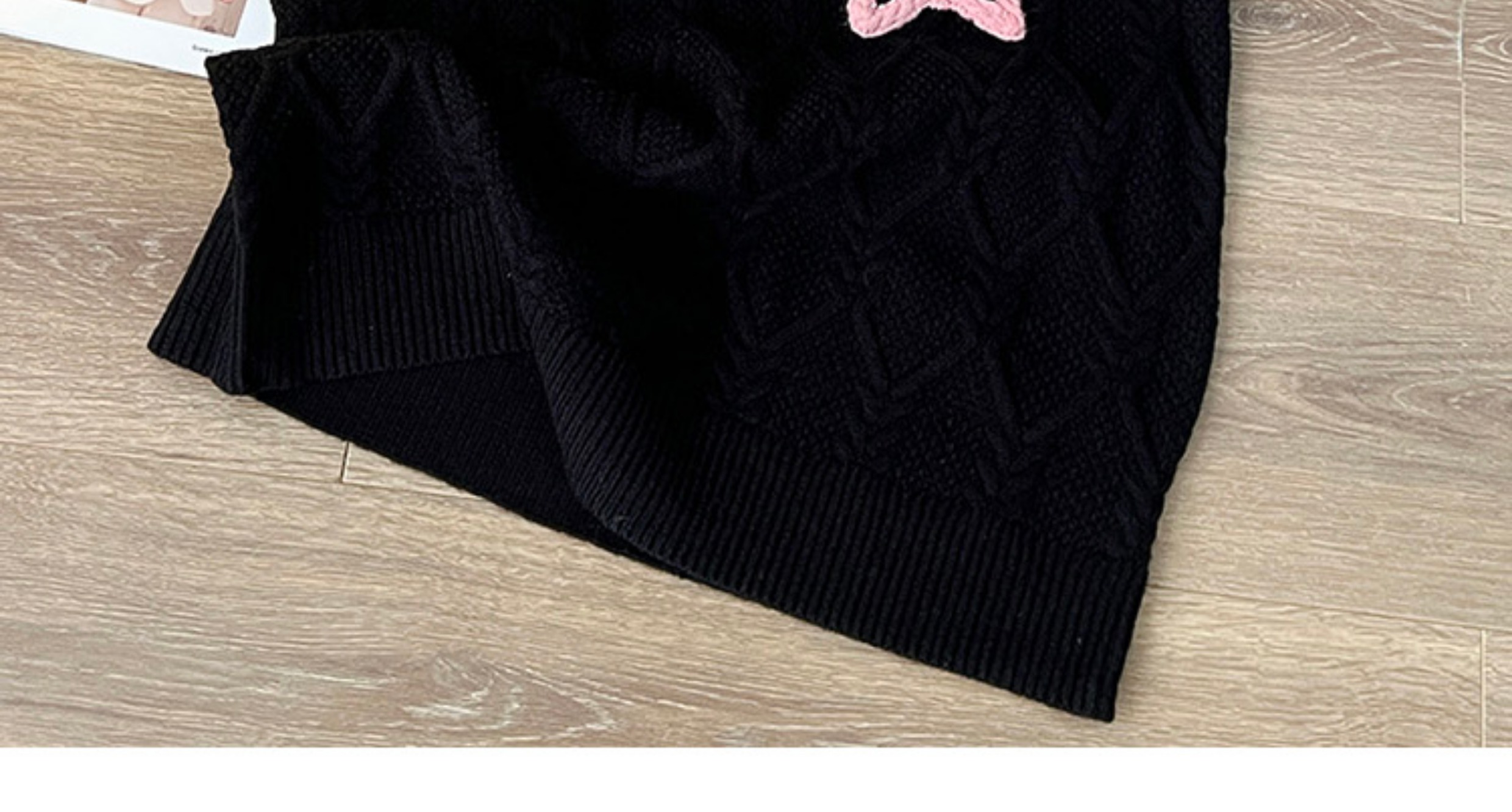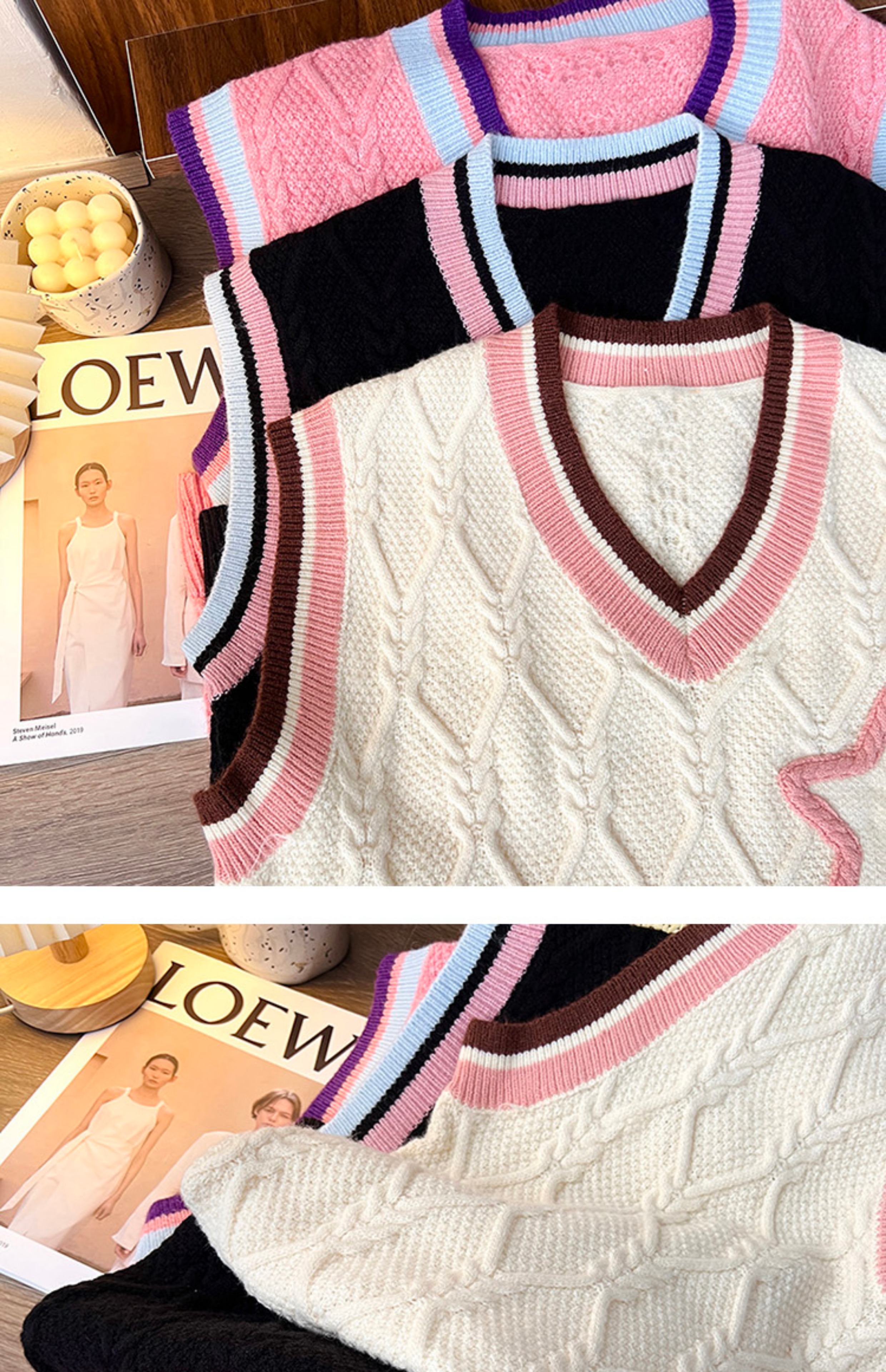 Men'S Velvet Knit Vests in a Collegiate Style, Available in Multiple Colors (Black / Cream / Pink) + Cable Knit Texture + V-Neck with Contrasting Trim + Unique Star Embellishments, a Couple'S Loose-Fitting Sweater Vest Suitable for Casual Campus Out