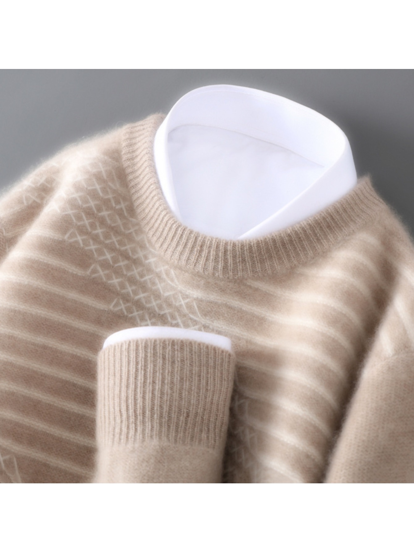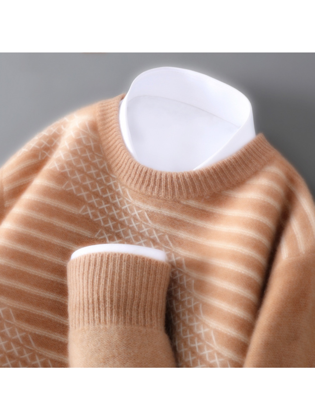 New Autumn And Winter Men'S 100% Color-Blocked Thick Pullover Sweater, Versatile Knit Base Layer.