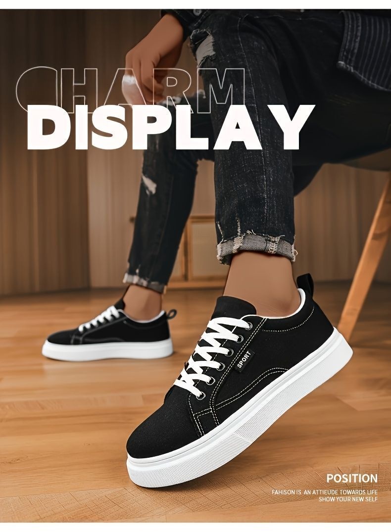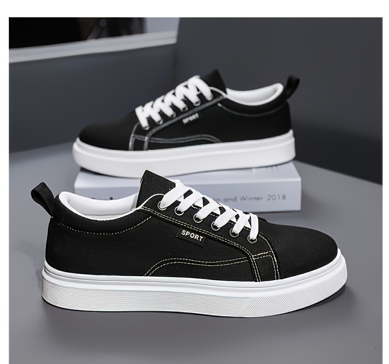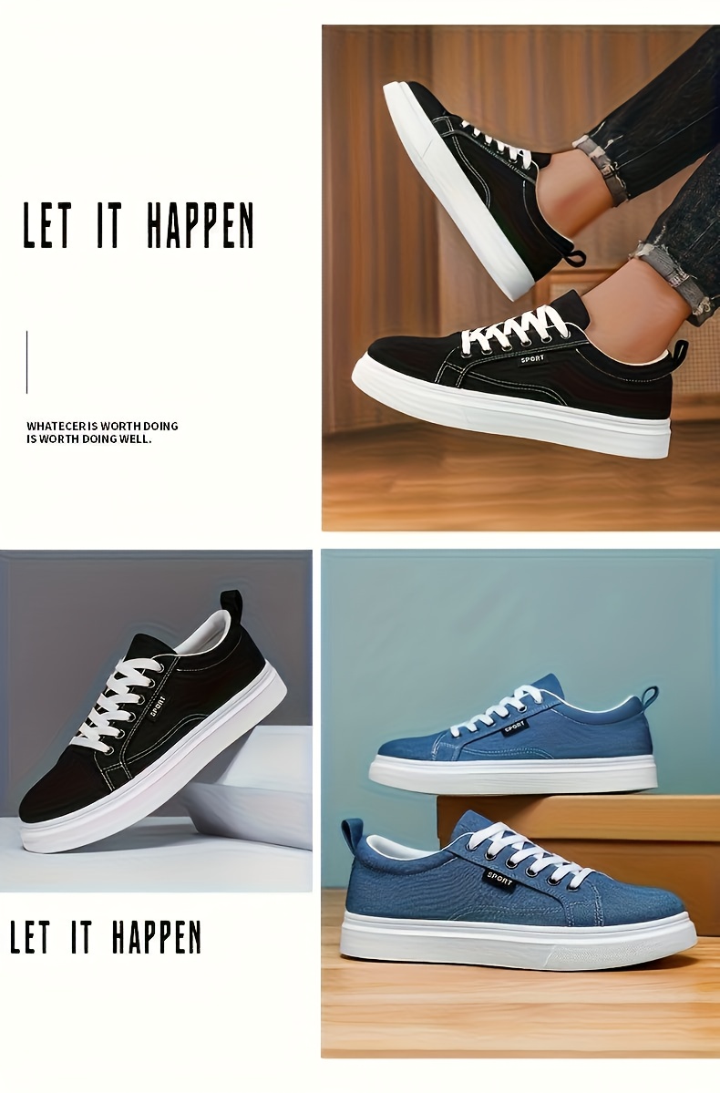 Trendy And Versatile Large-Size Men'S Skate Shoes, Casual Sneakers for Students, Low-Top Canvas sneakers, Fashionable Outdoor Footwear Available in Black And Blue for All Seasons: Spring, Summer, Autumn, And Winter
