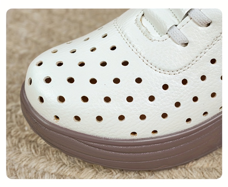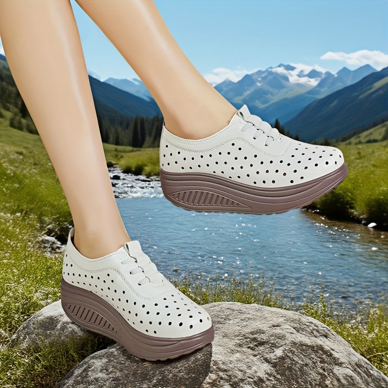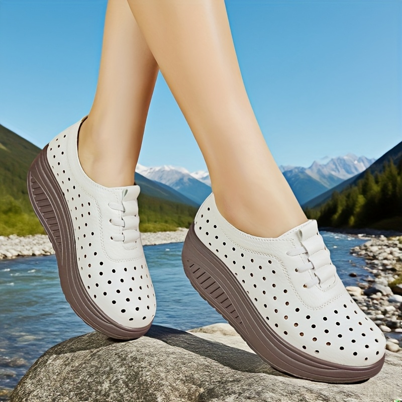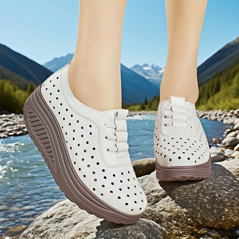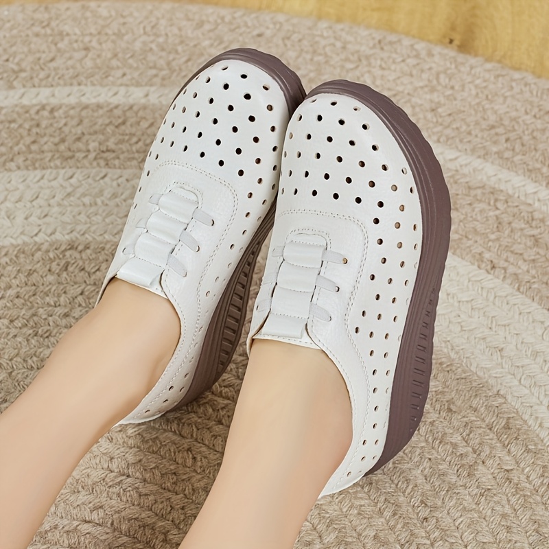 Women's Breathable Loafers Flat Shoes with Perforated Thick Sole, Fashionable Versatile Spring Summer Autumn All-Season Ladies' Height-Increasing Shoes, Women Shoes, Sneakers