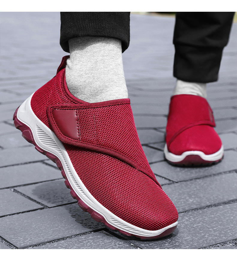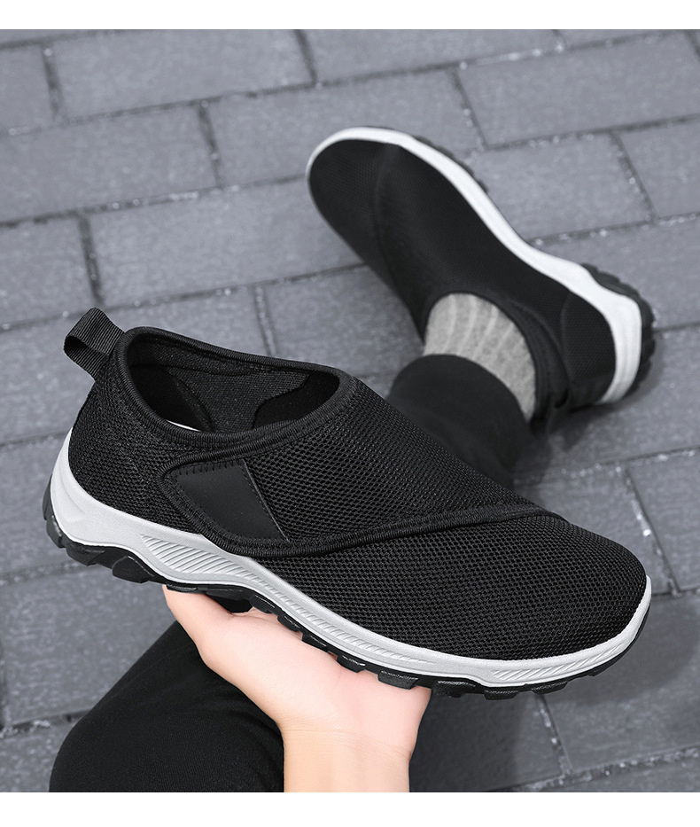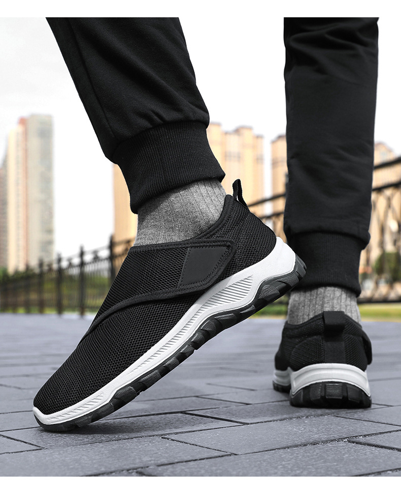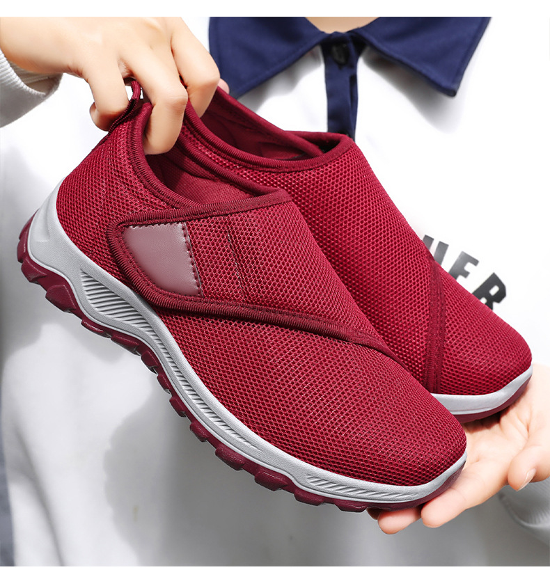 Spring Mesh Breathable Casual Middle-aged and Elderly Single Shoes Women | Low Top, Fabric Upper, Hook-and-loop Closure, Plain Toe, Solid Color, Superfine Fiber Inner, Rubber Insole, Sole, Women Shoes, Sneakers