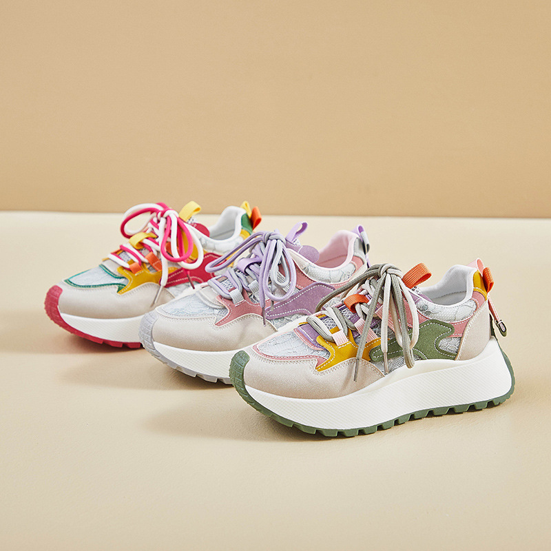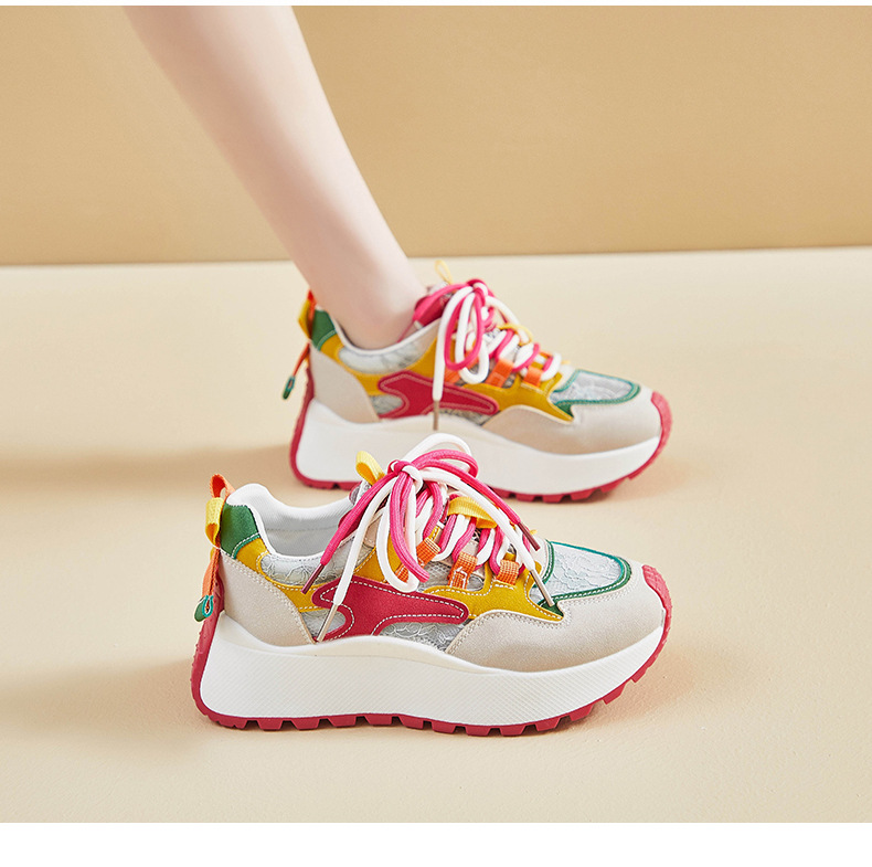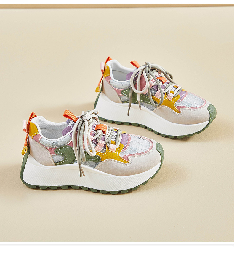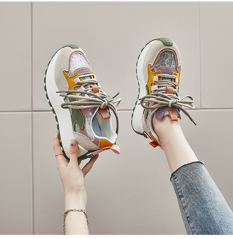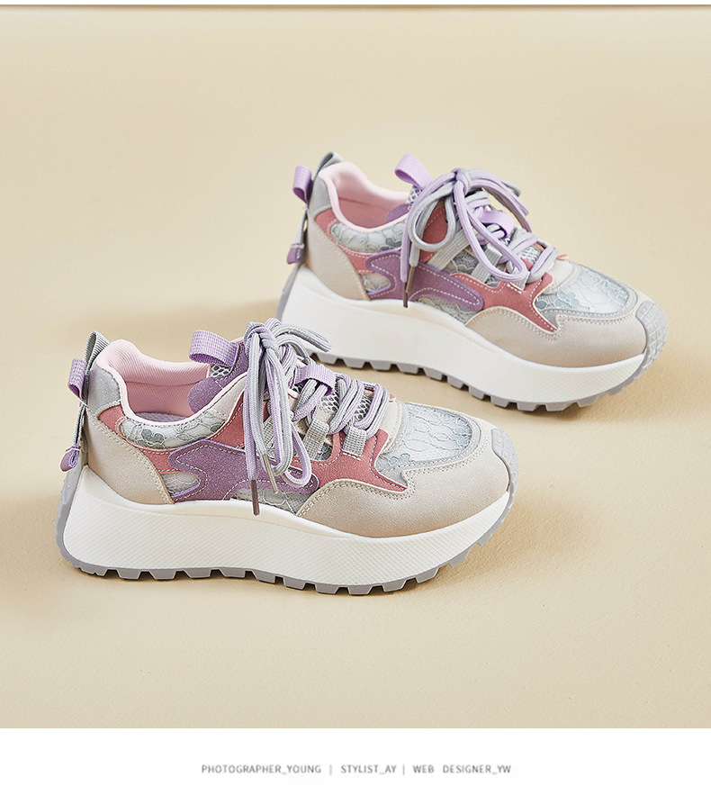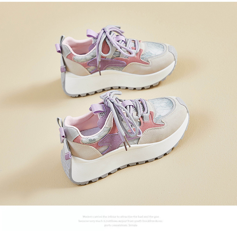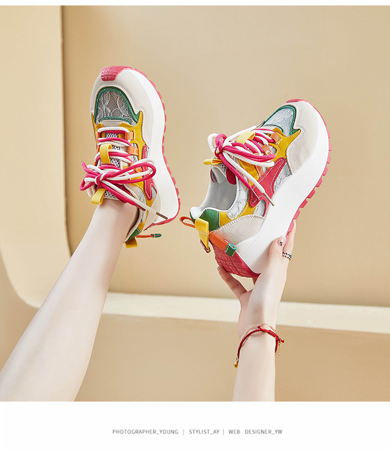 Women' Korean Style Low-Top Sneakers Suitable for Height Increase, Breathable Mesh Sneakers with Sole, Lace-Up Round Toe for Running, Casual Wear, & Everyday Use - Spring Student Fashion Footwear, Women Shoes
