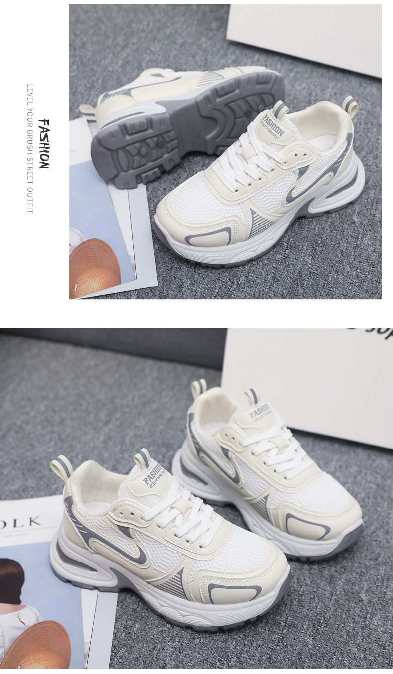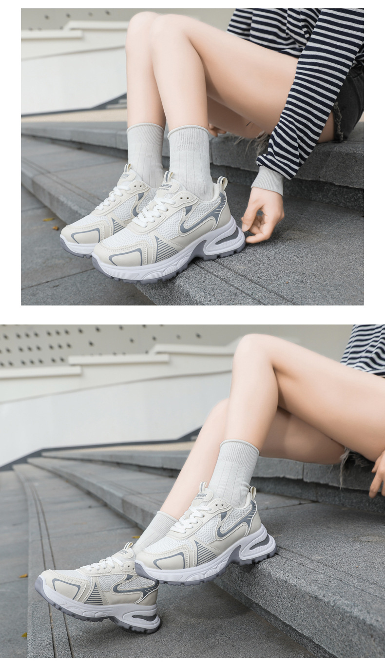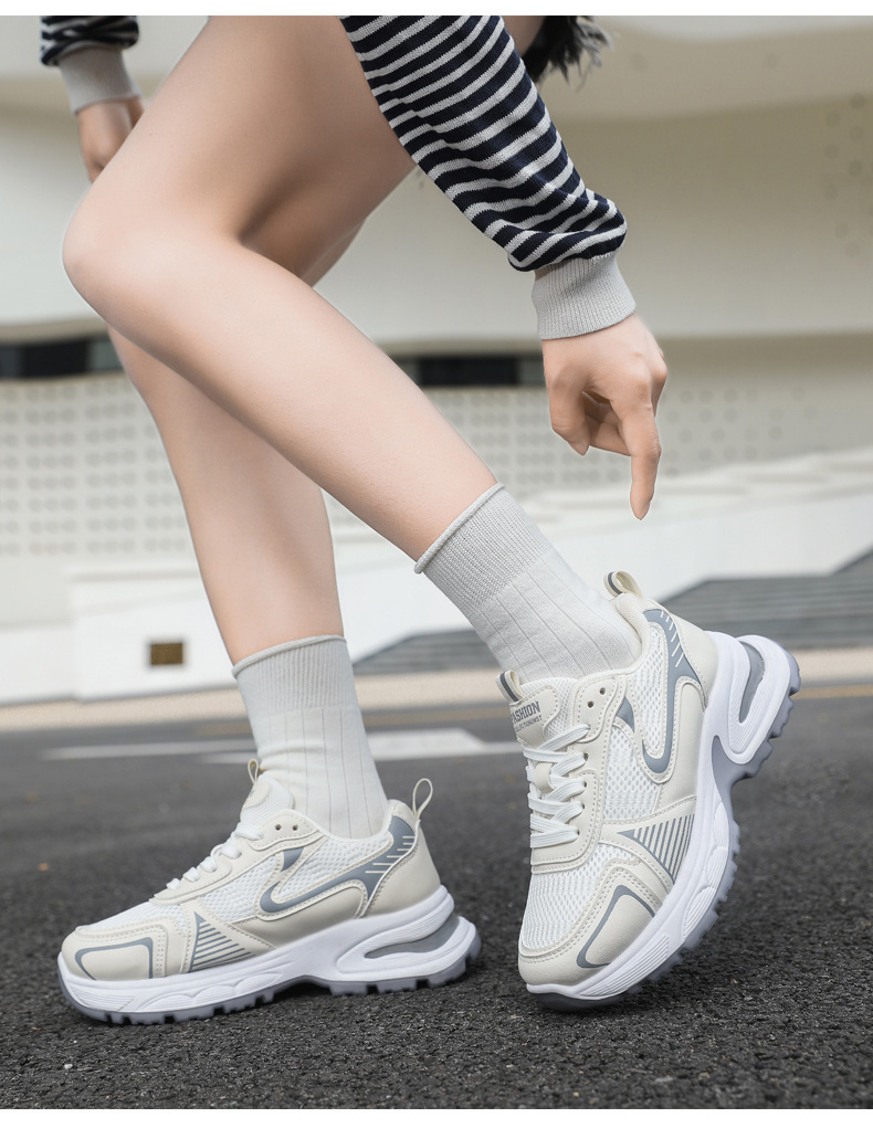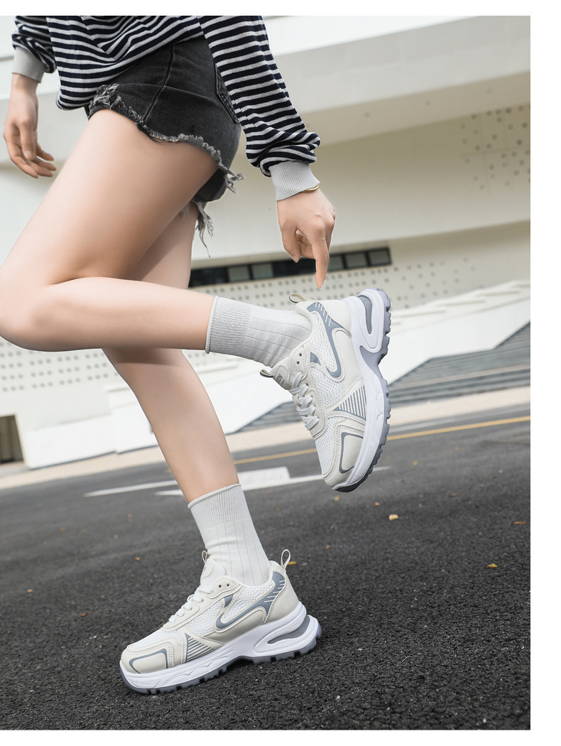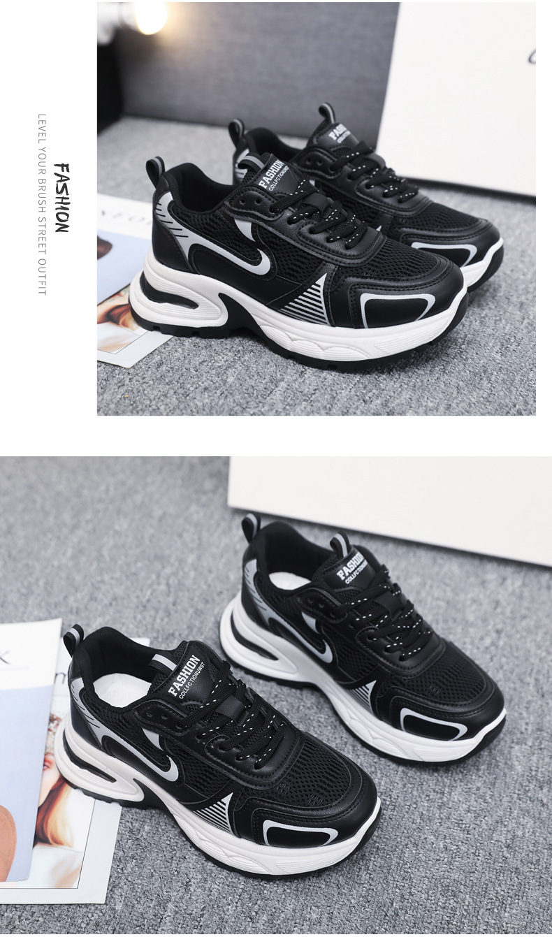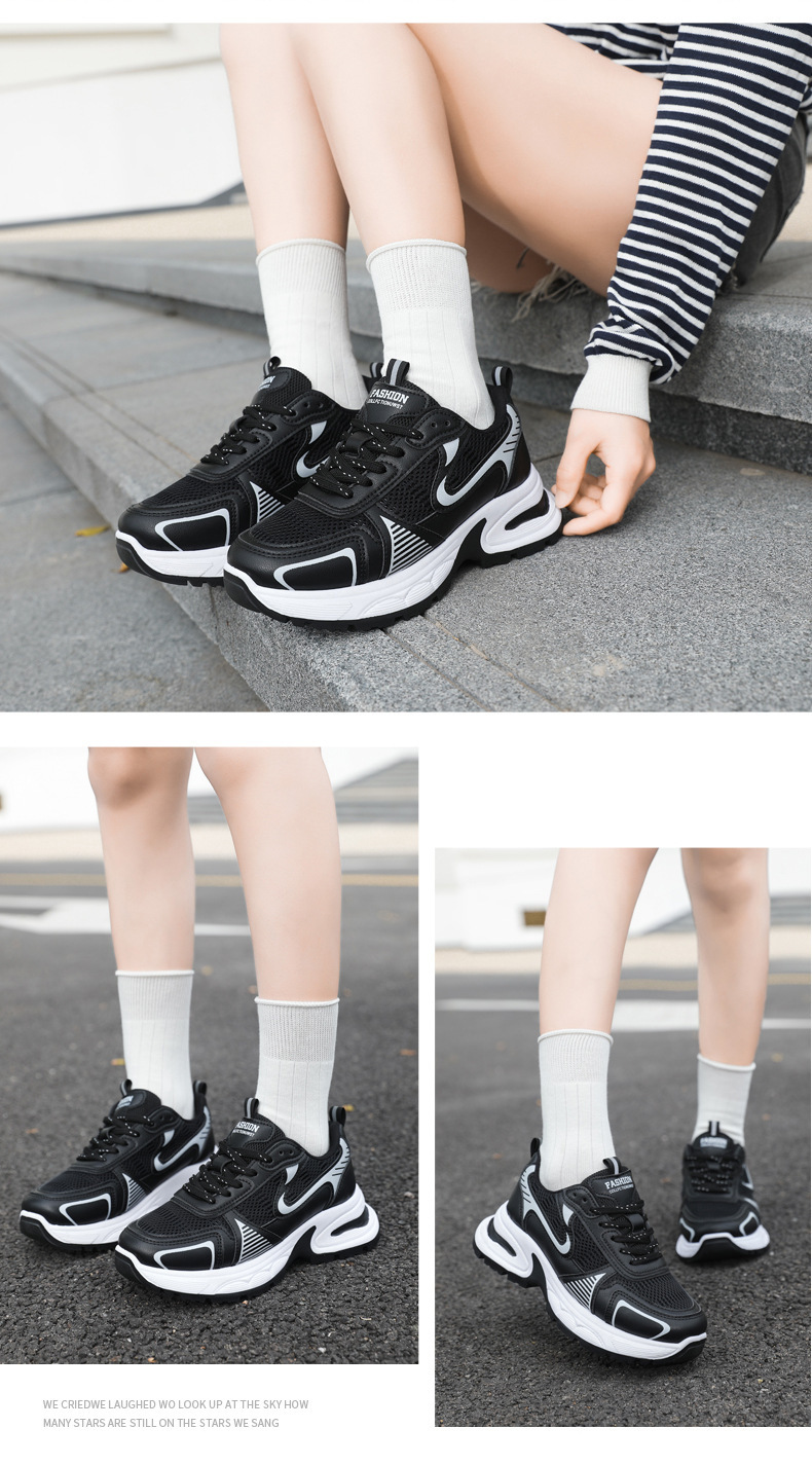 Women'S Dad Shoes Thick Sole Lightweight Sneakers | Fashionable Breathable Mesh Korean Style Casual Shoes 2026, Lace-up Closure, Plain Toe, Solid Color, Low Top, Spring Season, Women Shoes