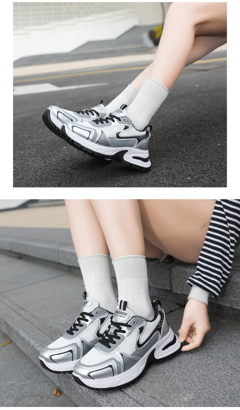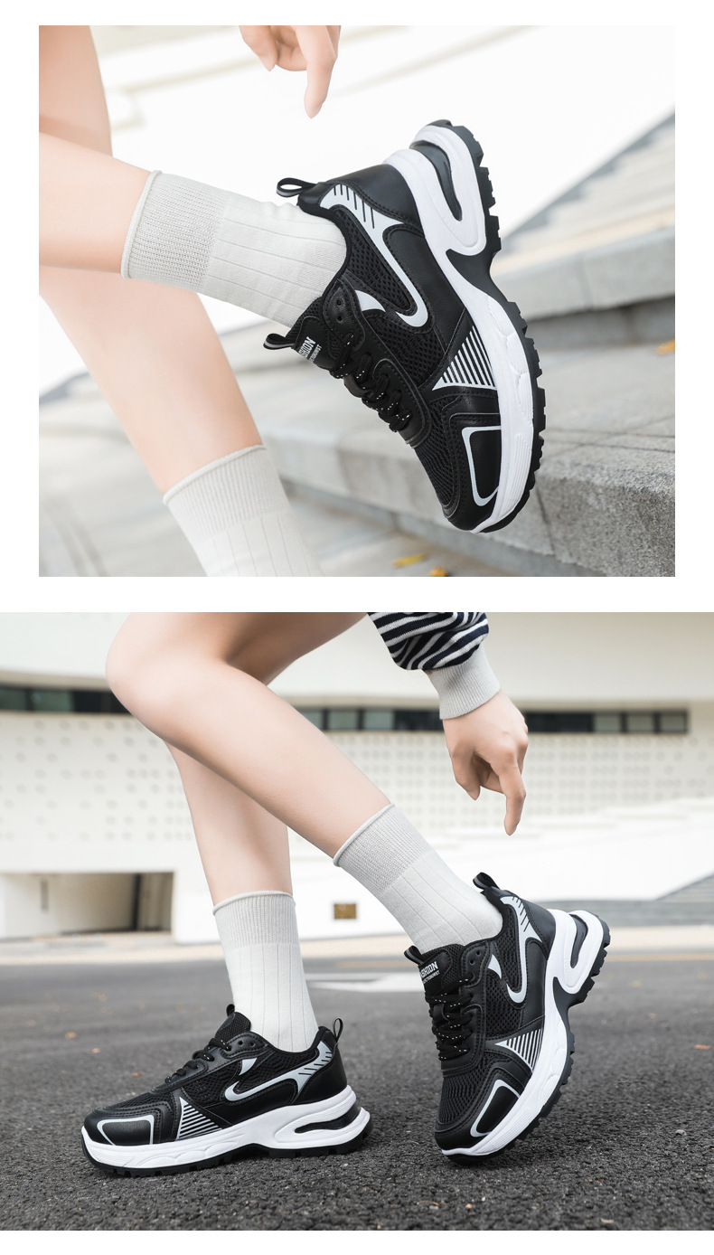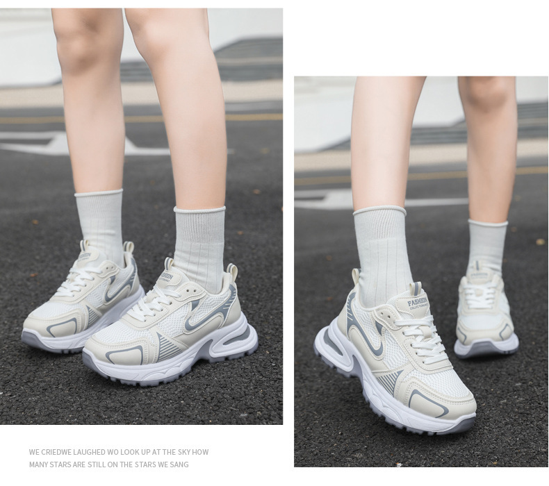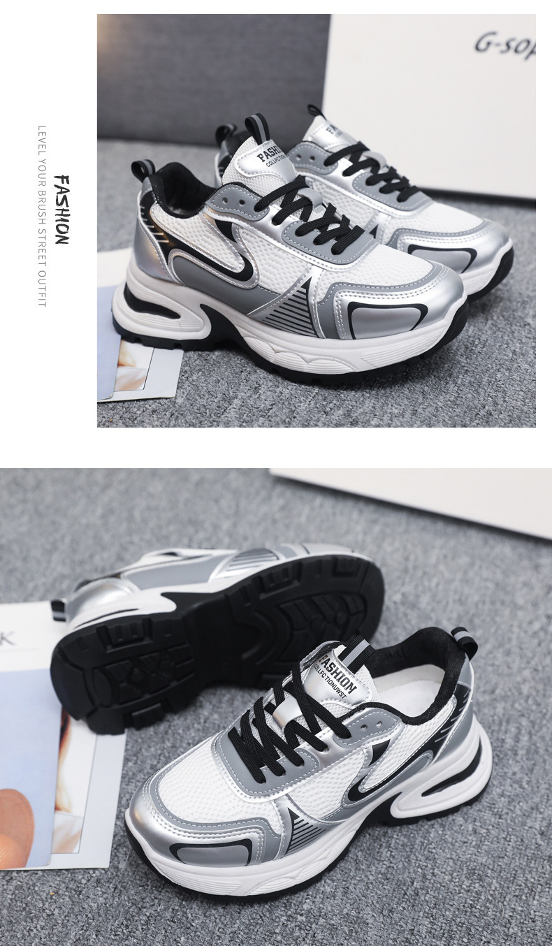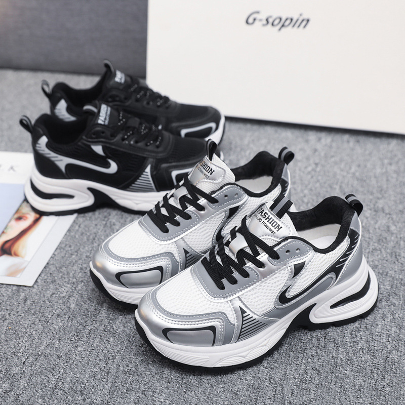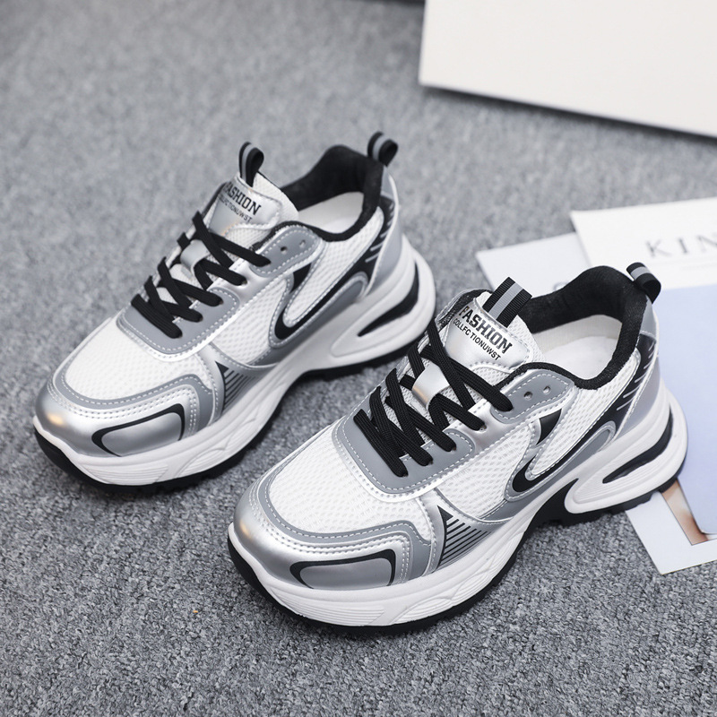 Women'S Dad Shoes Thick Sole Lightweight Sneakers | Fashionable Breathable Mesh Korean Style Casual Shoes 2026, Lace-up Closure, Plain Toe, Solid Color, Low Top, Spring Season, Women Shoes