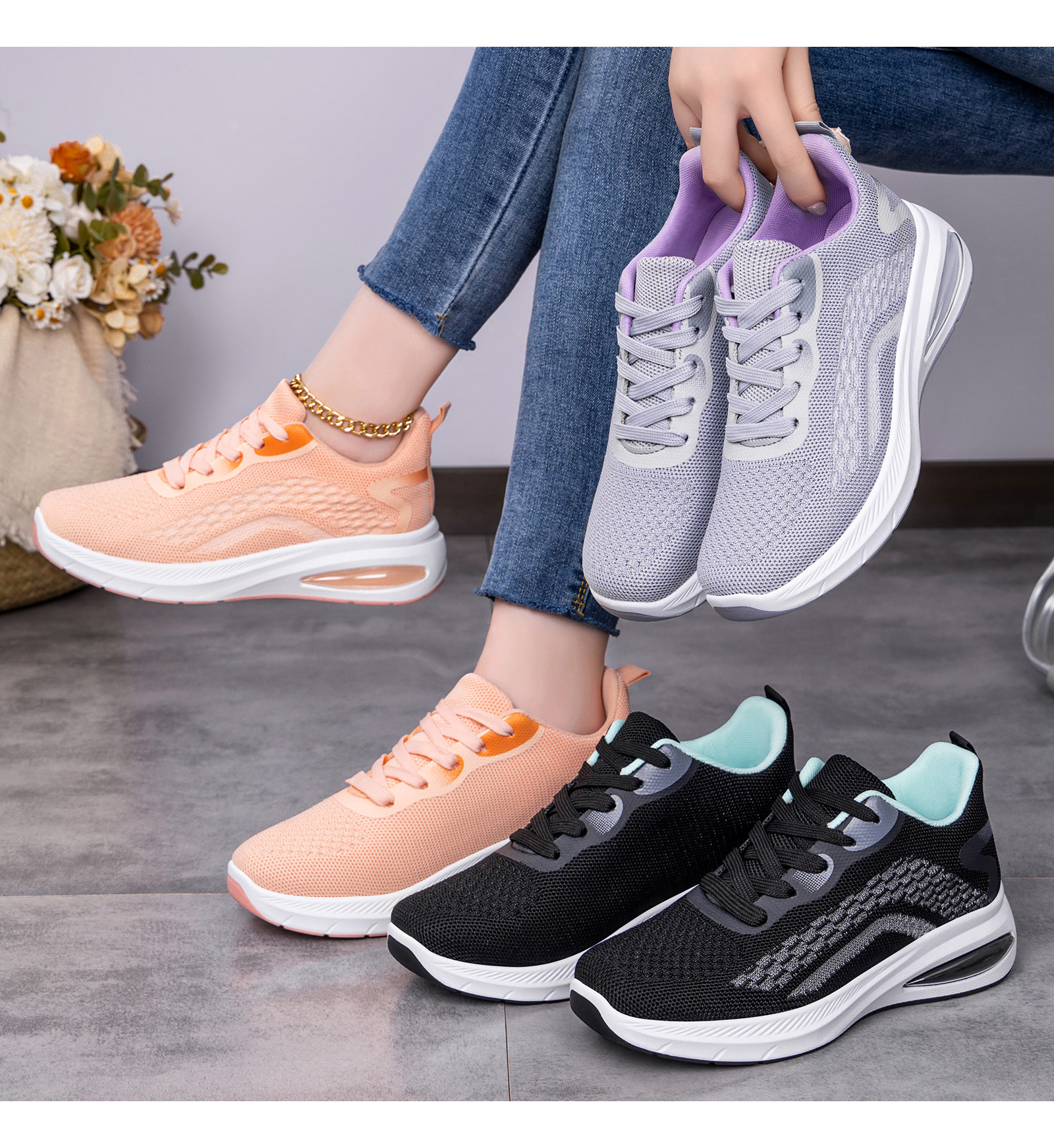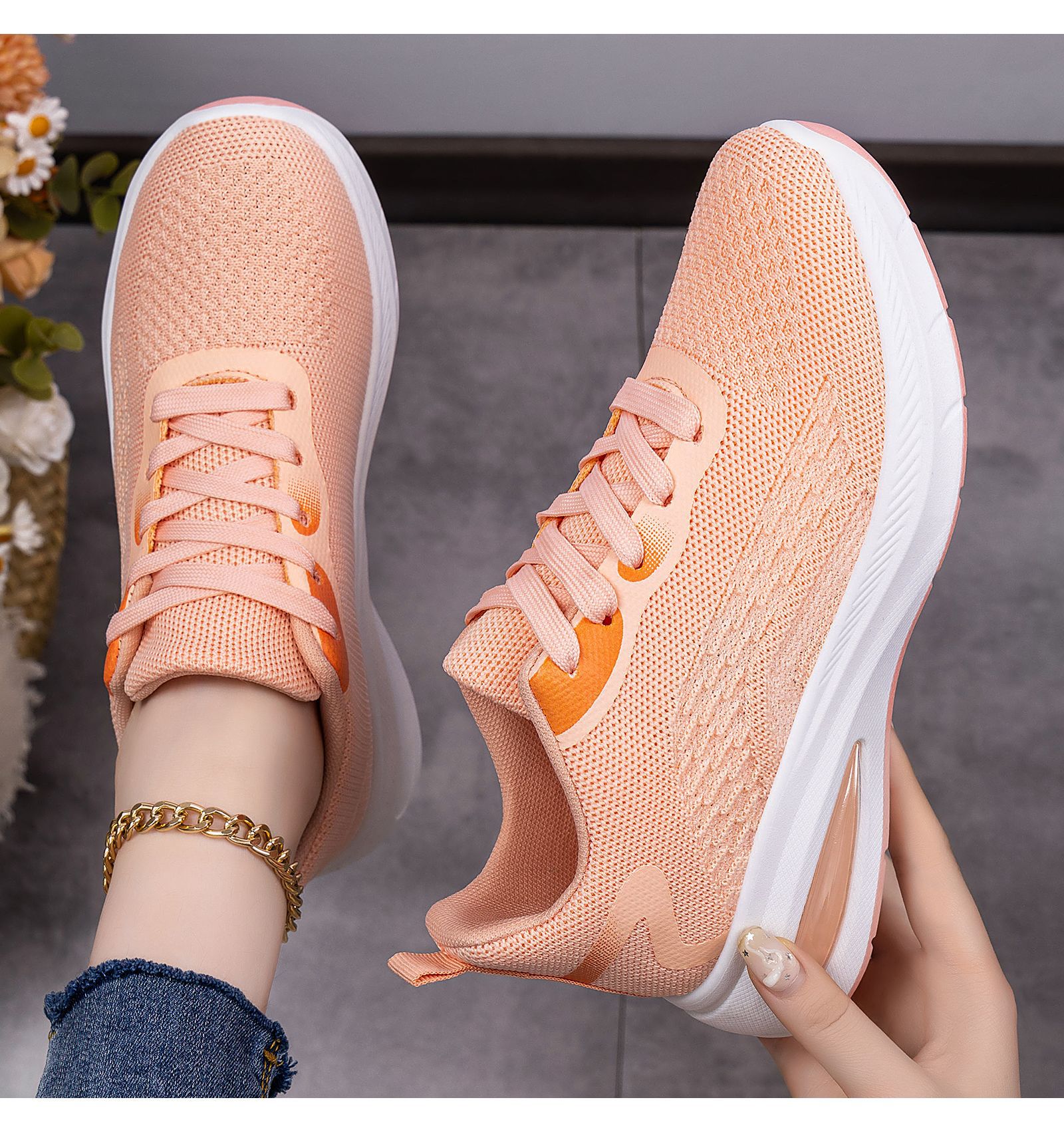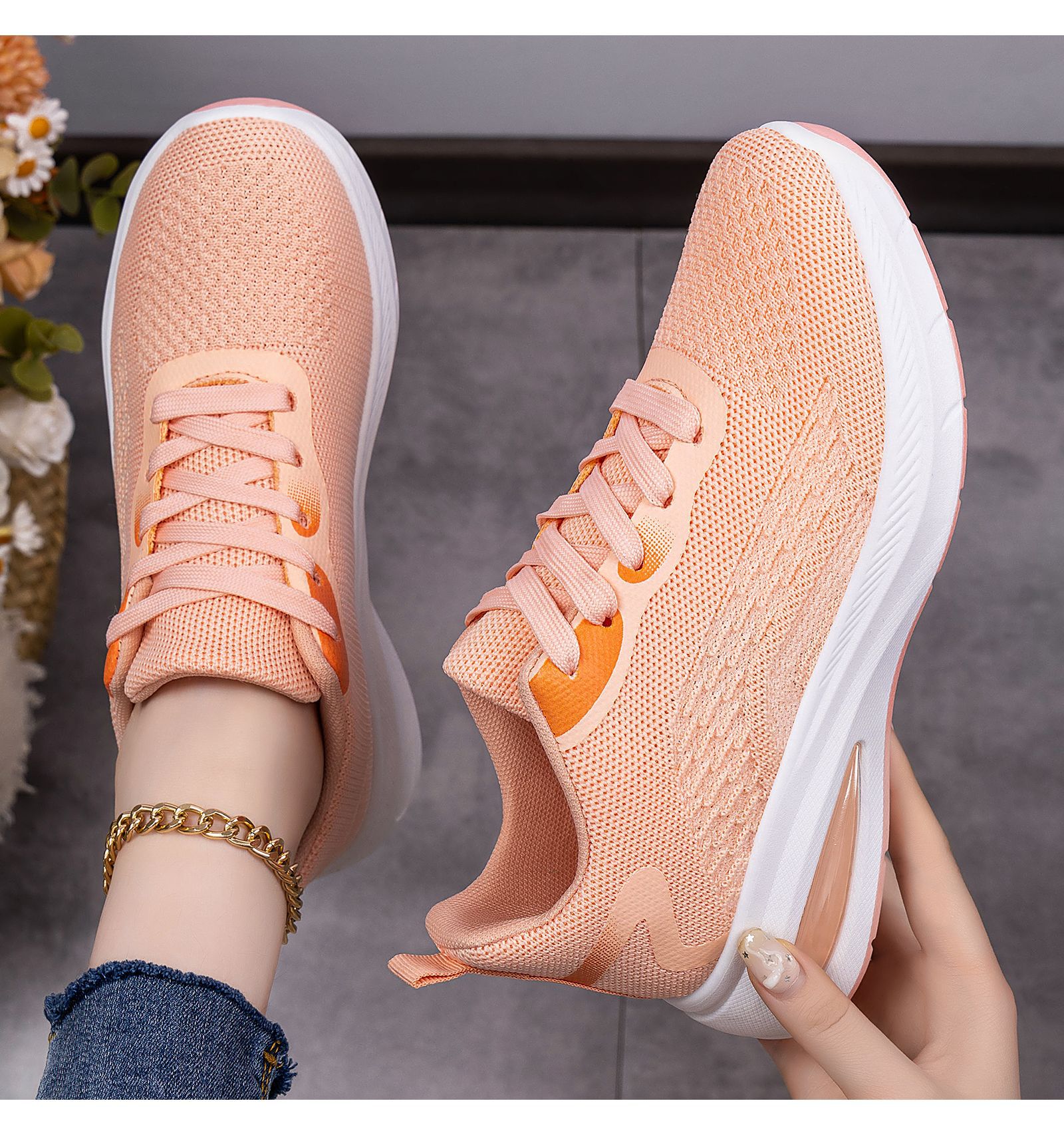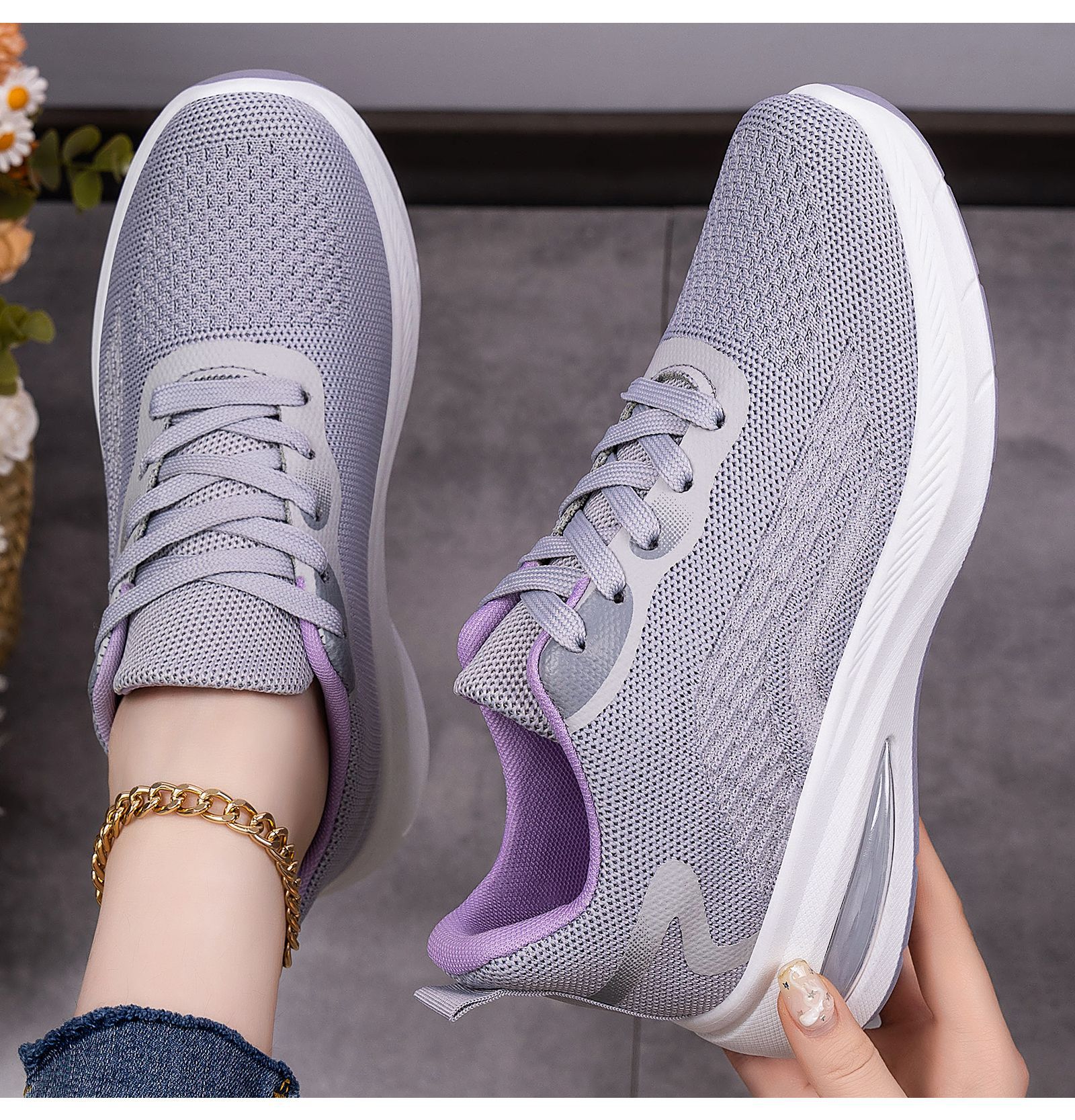 Women's Lightweight Breathable Sneakers - Low-Top Lace-Up Sneakers with Round Toe, Sole & Cushioned Sole Suitable for Sports, Gym,, Casual Wear - Spring Outdoor Minimalist Solid Color (Hand Washable), Women Shoes