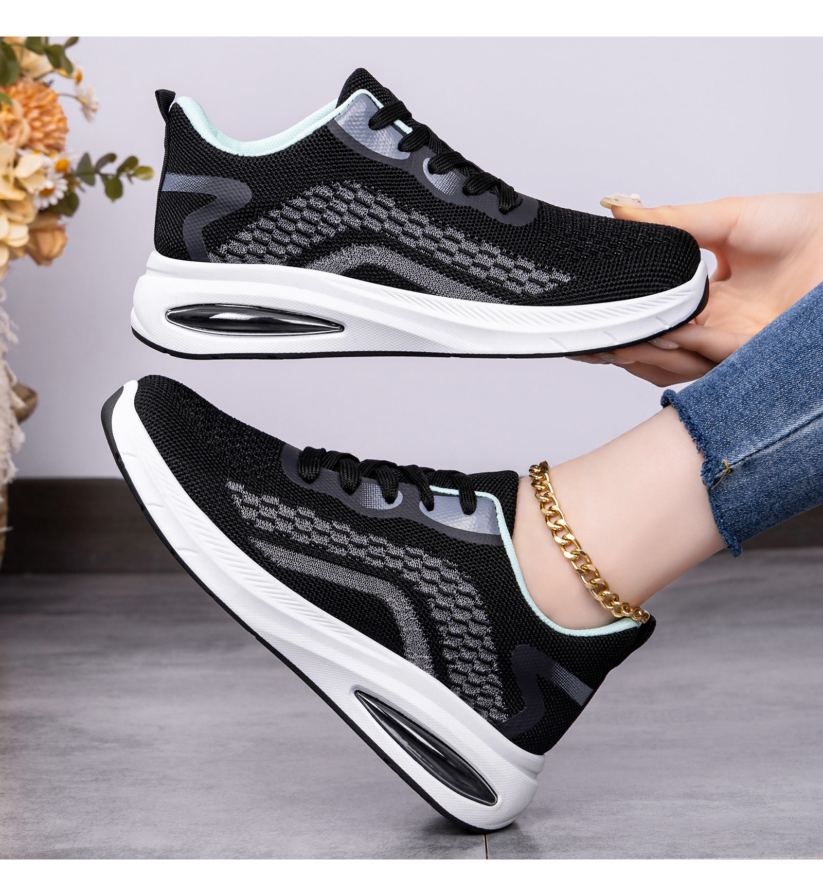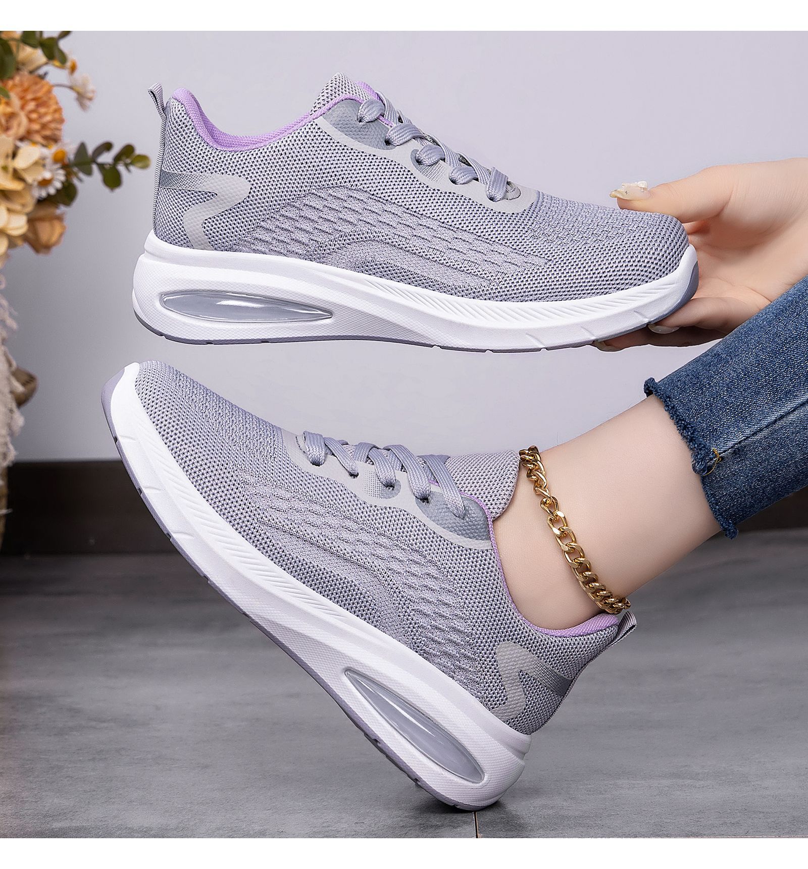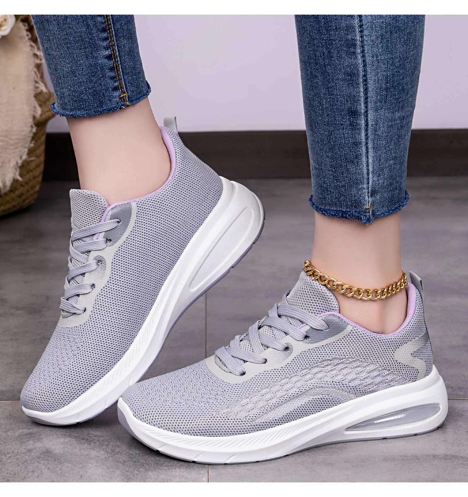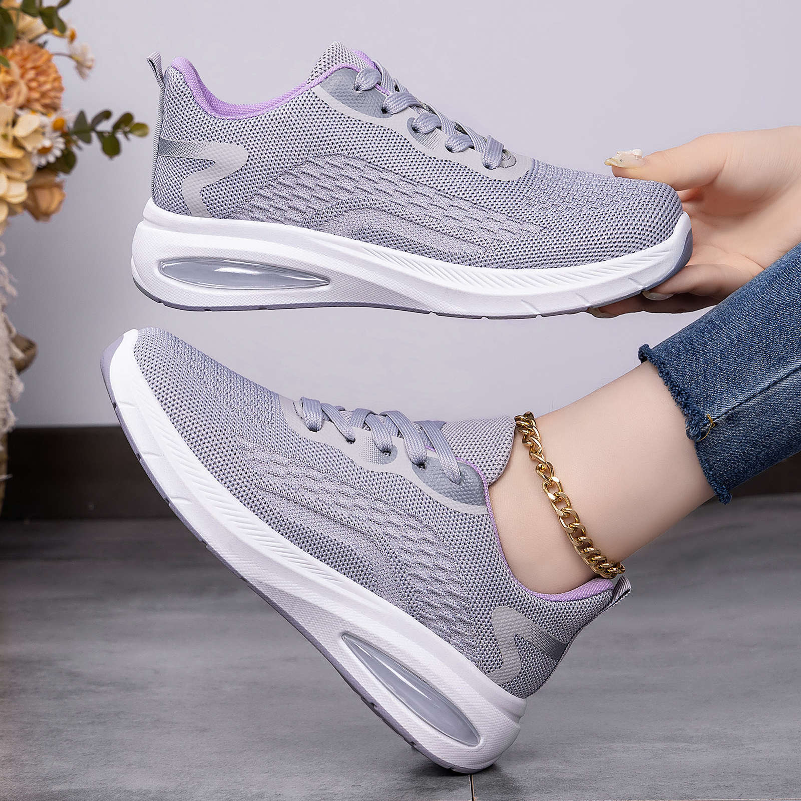 Women's Lightweight Breathable Sneakers - Low-Top Lace-Up Sneakers with Round Toe, Sole & Cushioned Sole Suitable for Sports, Gym,, Casual Wear - Spring Outdoor Minimalist Solid Color (Hand Washable), Women Shoes